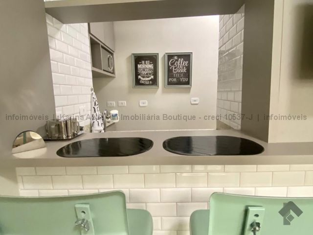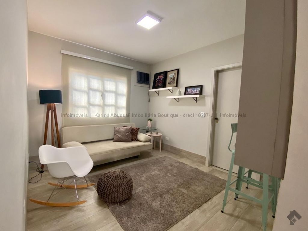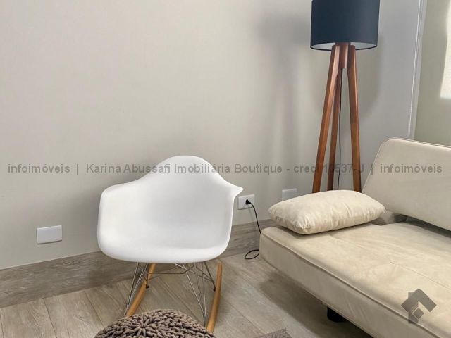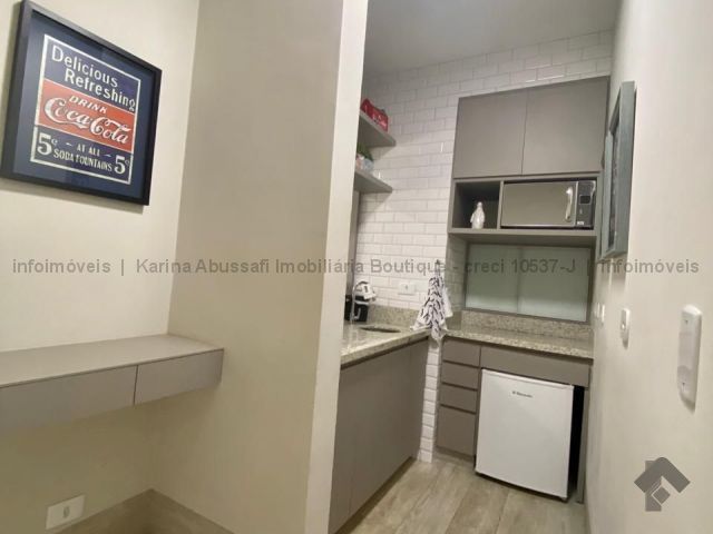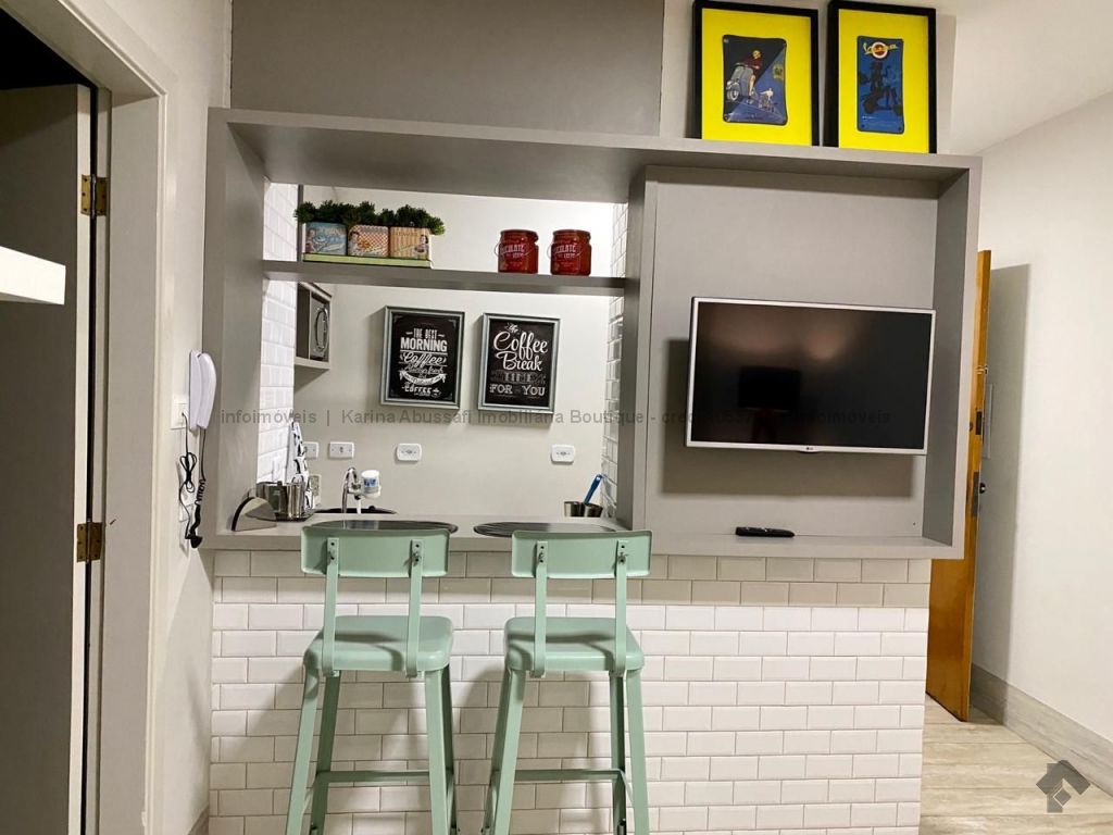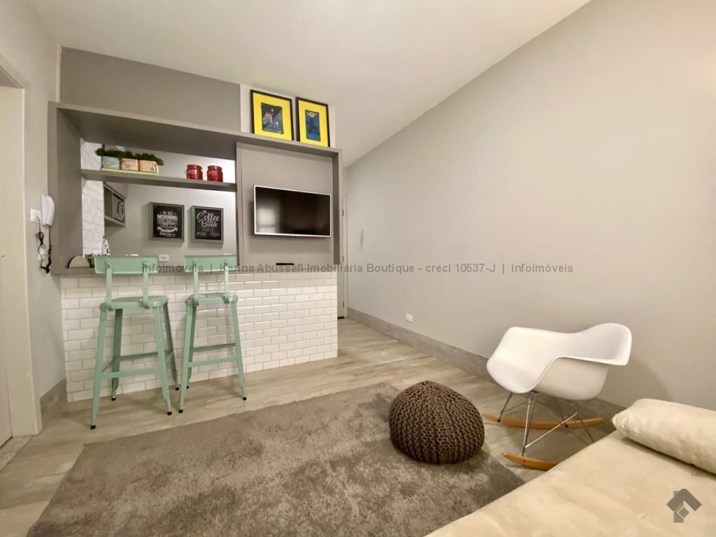 Belíssimo Studio com 35m². Térreo, totalmente reformado, com acabamento de primeira linha e mobiliado: sala com cozinha americana completa em armários, quarto independente com armários e banheiro.