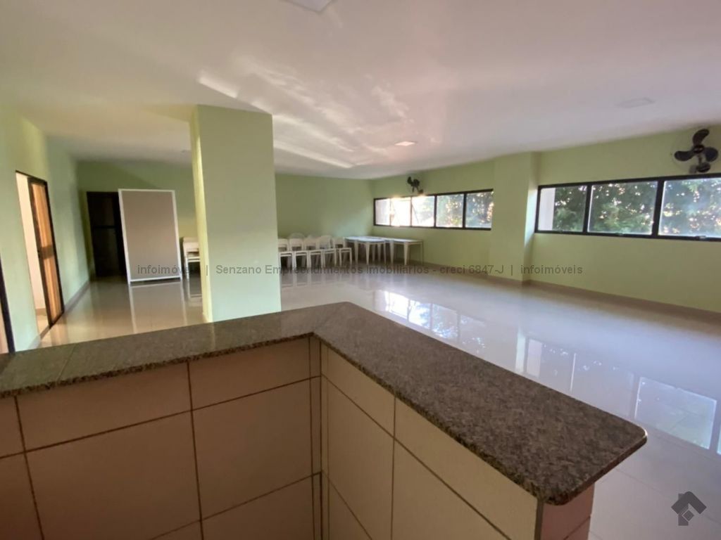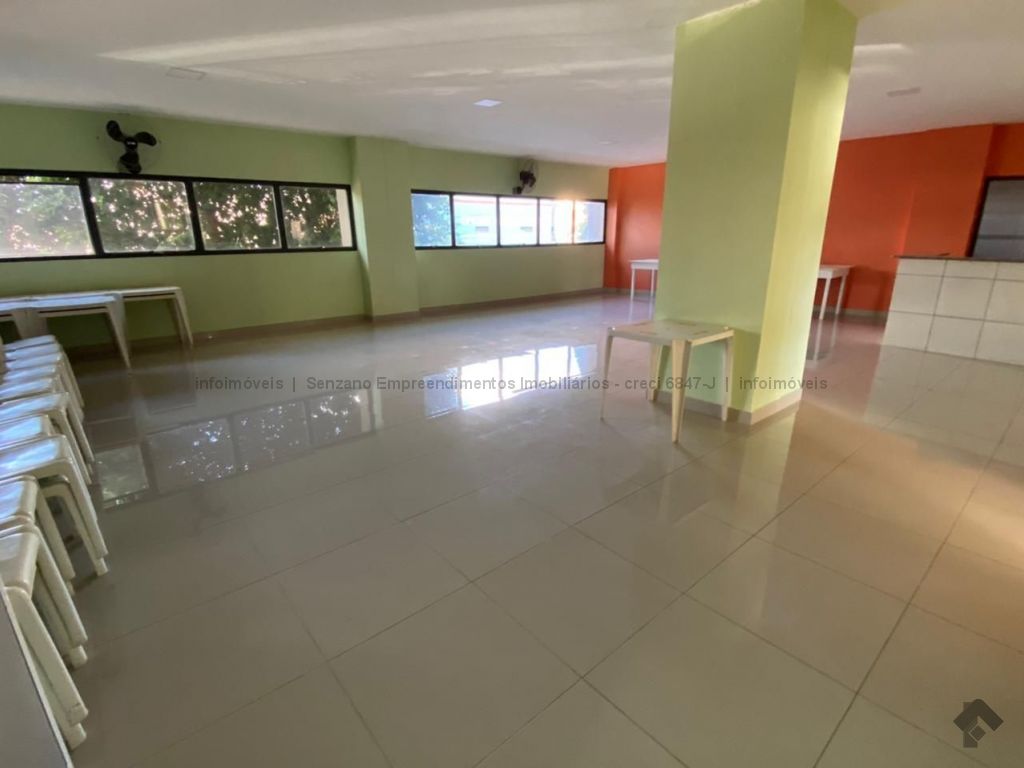 Sala 2 ambientes, 2 quartos, cozinha, lavanderia, wc de serviço, 1 vaga no estacionamento e salão de festa.