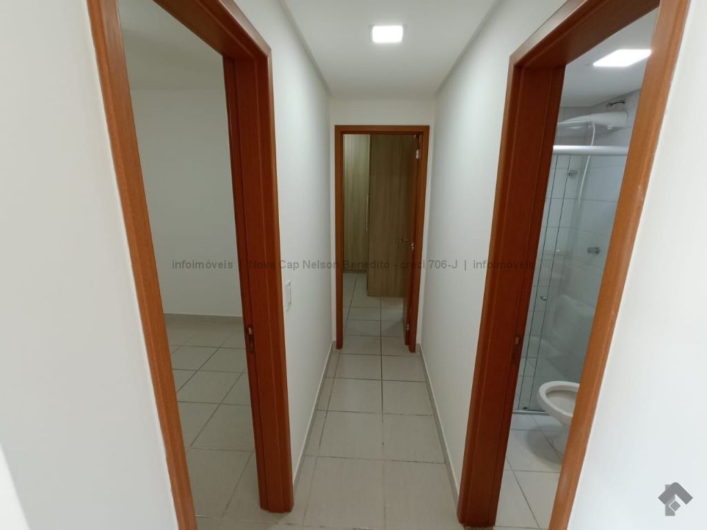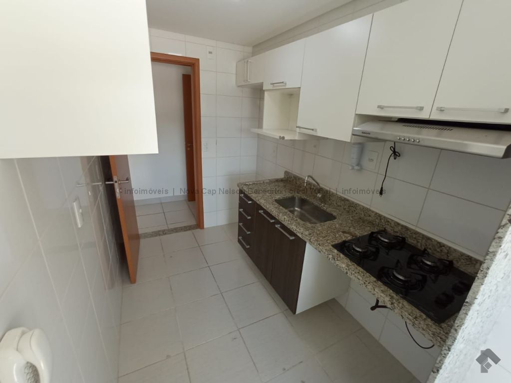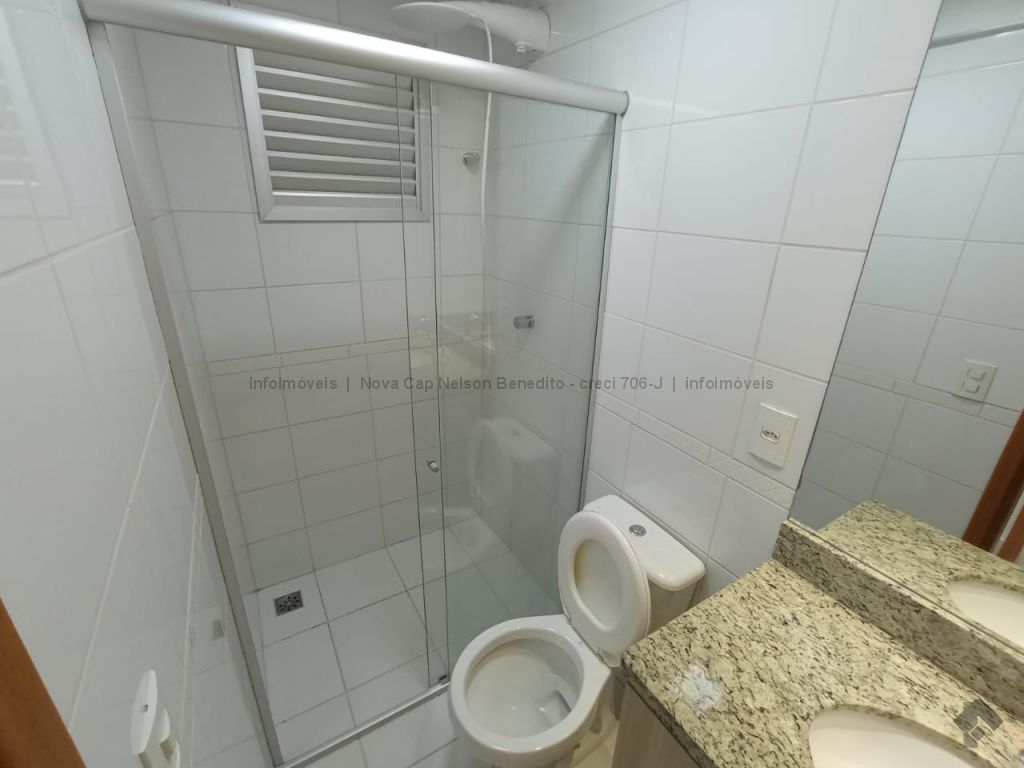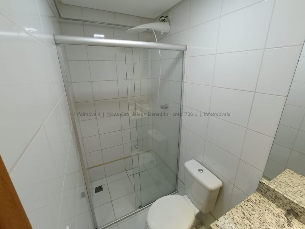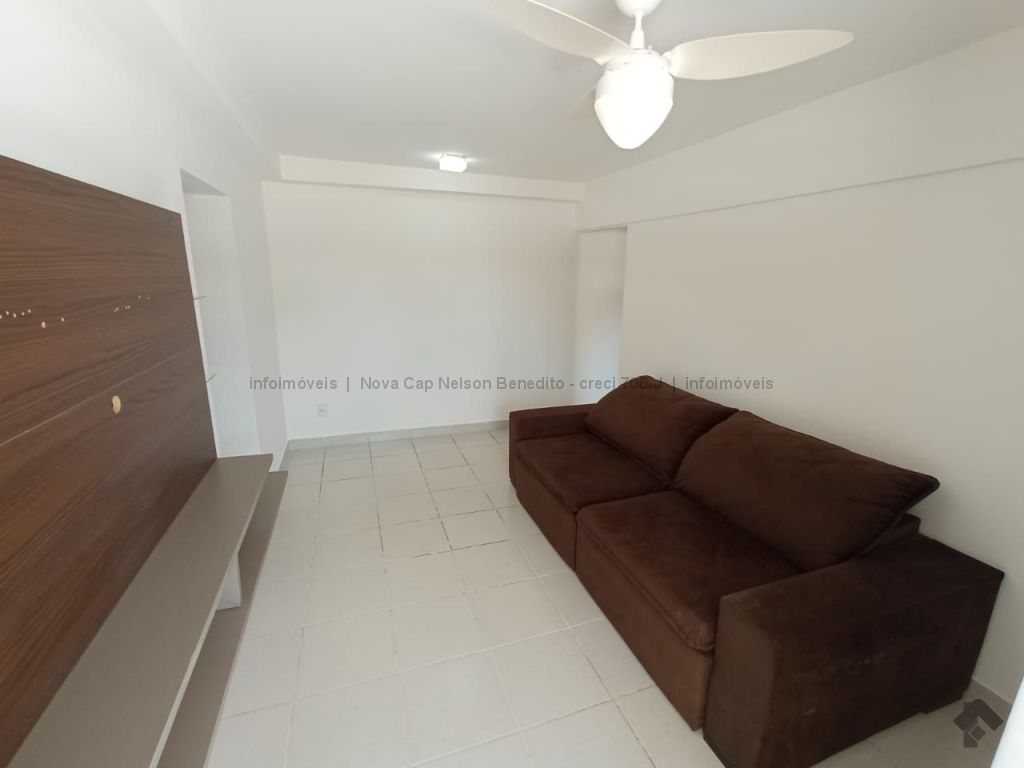 1 apartamento com armários, 1 quarto, 1 banheiro social com armário, sala para 2 ambientes, sacada com churrasqueira e 1 vaga de garagem coberta. Apartamento mobiliado com sofá, rack para televisão na sala de estar, ventilador na sala e nos quartos e ar condicionado na suíte, fogão, chuveiros elétricos.