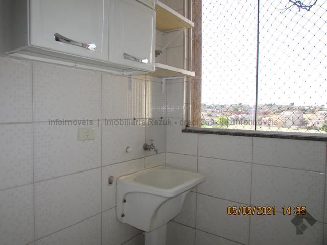 Sala com sacada, 1 apartamento com armário sendo o wc com armário embaixo da pia e box blindex, 2 quartos com armários, wcs com box blindex, cozinha com armários, lavanderia com armários e 1 vaga no estacionamento. Condomínio com portaria 24horas, vigilância noturna e área de lazer composta de duas piscinas, quatro churrasqueiras e uma quadra esportiva.