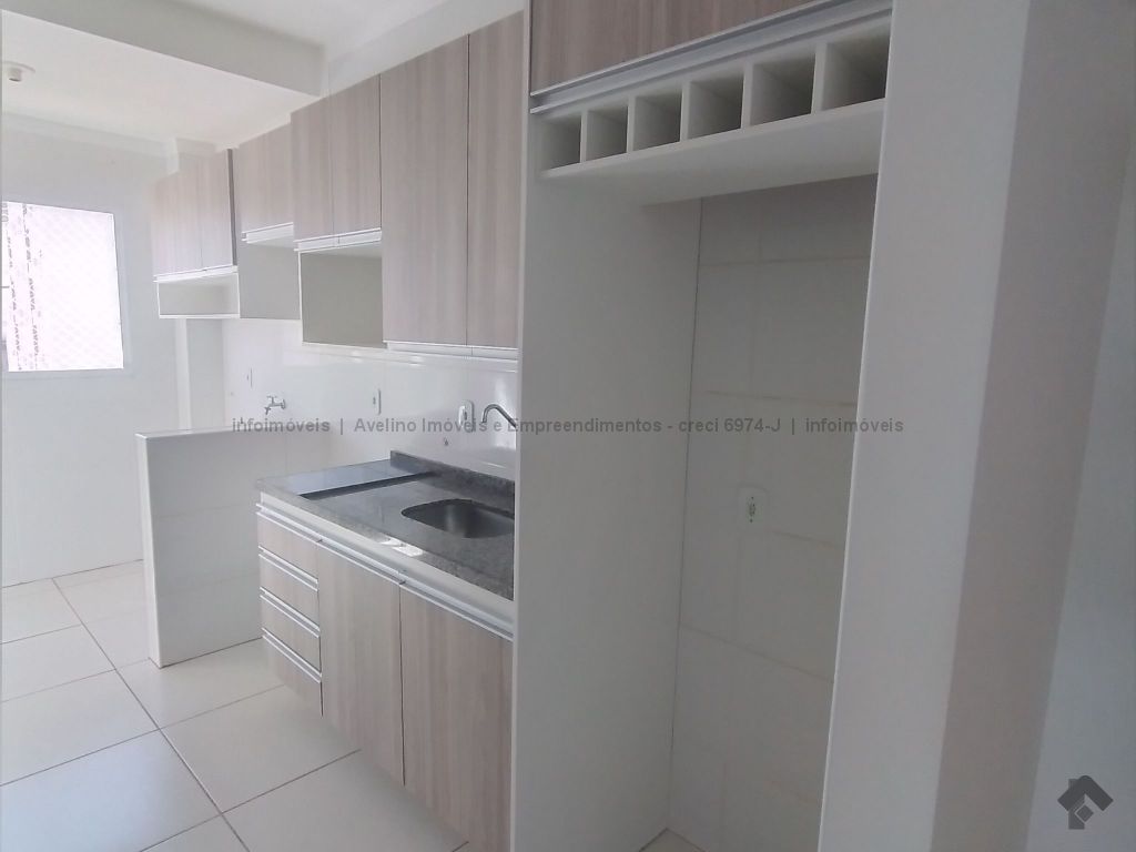 Apartamento composto por sala, sacada, cozinha com a/e, área de serviço com a/e, 1 quarto com a/e, 1 quarto sem a/e, 1 banheiro social com box e a/e. Com tela de proteção nas janelas e sacada.