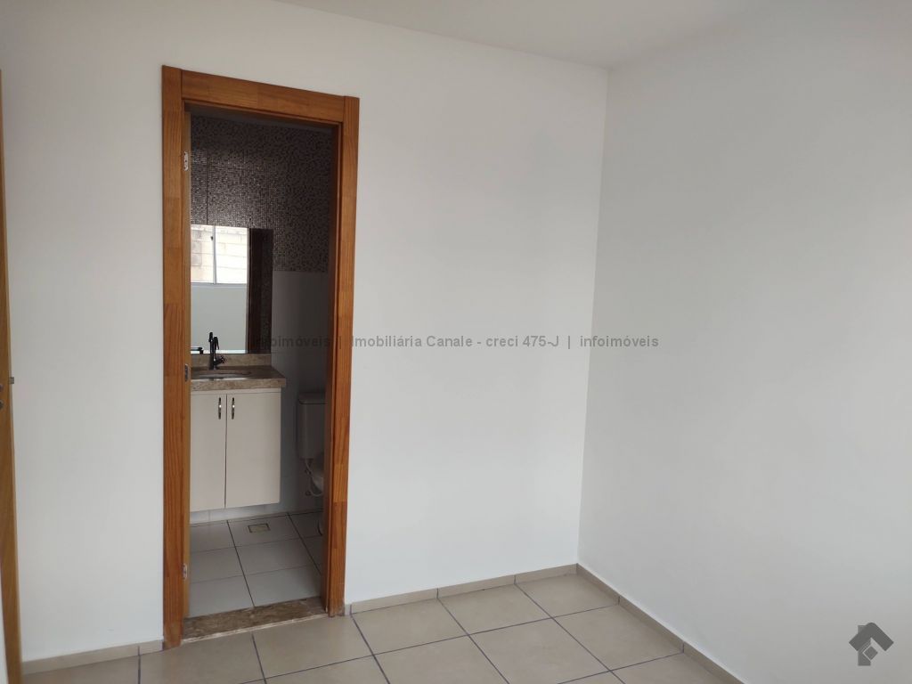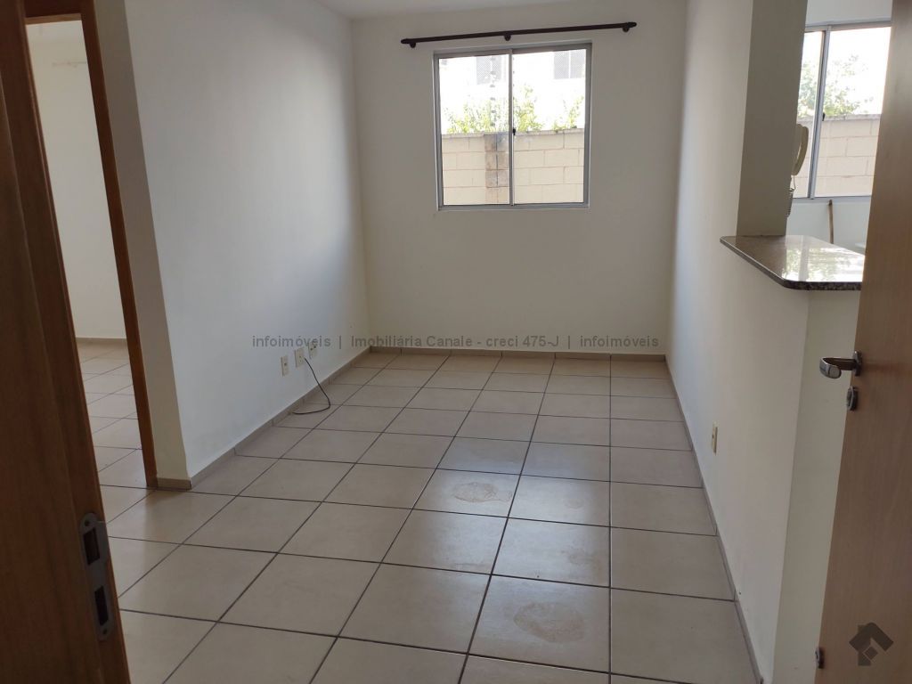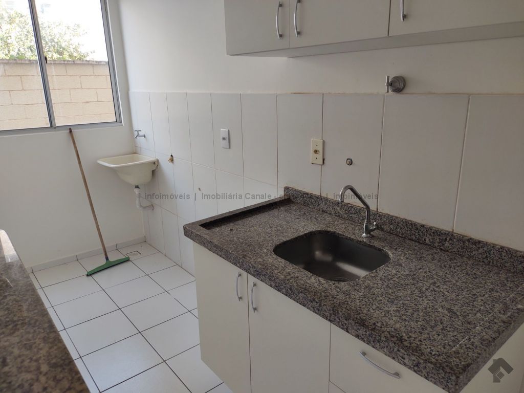 Sala, cozinha-lavanderia, 1 suíte, 1 quarto, banheiro com armário, 1 vaga de garagem.