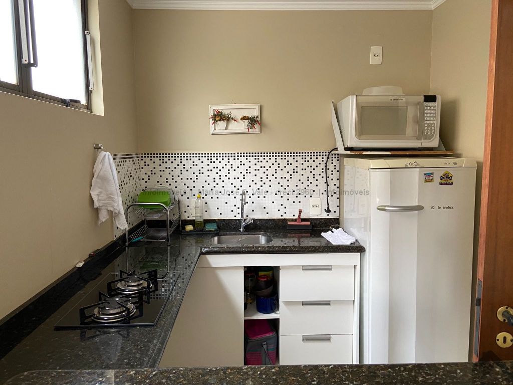 Sala para 3 ambientes com sacada, 1 suíte simples com ar condicionado, 1 quarto com armários, banheiro da suíte com box, chuveiro e armário, banheiro social com box e chuveiro, cozinha com armários fogão, micro-ondas e geladeira, área de serviço ampla separada da cozinha com banheiro de serviço. Uma vaga de garagem com ótima posição que acomoda carro pequeno e moto ou camioneta. Condomínio com piscina, churrasqueira, quadra e salão de festa.