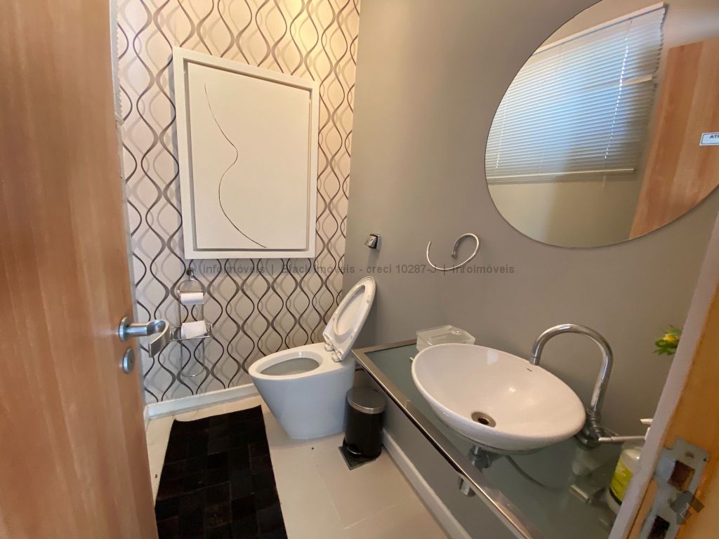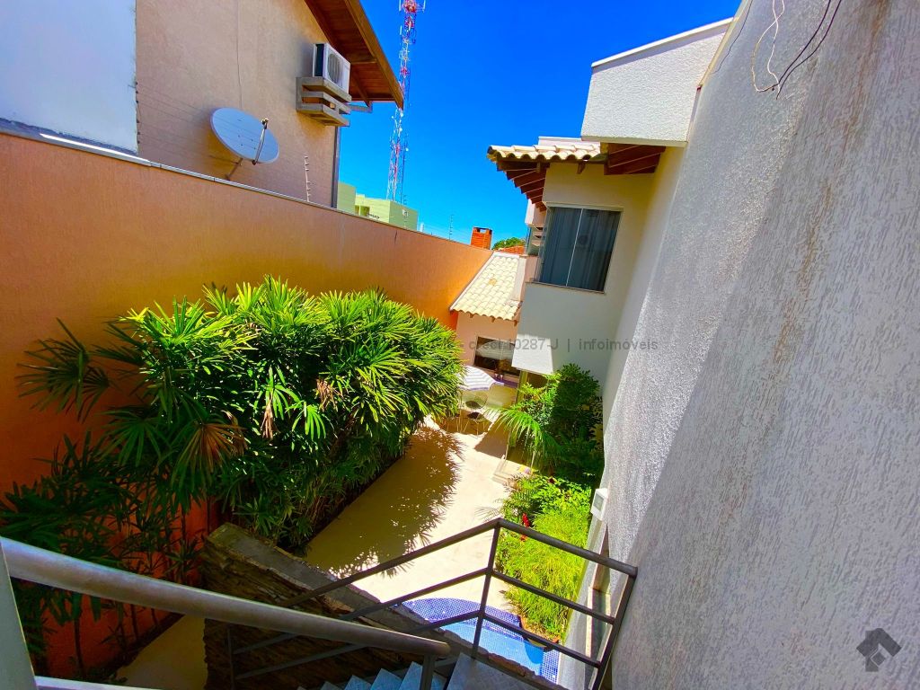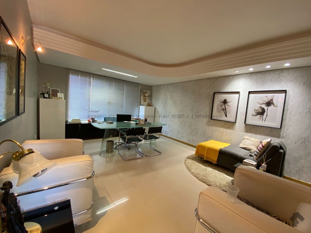 Com escritório com entrada independente, recepção, lavabo, 02 salas, sendo uma com banheiro e sobrado com 03 suítes, sendo uma master, sala para 03 ambientes, lavabo, cozinha planejada, área de serviço, jardim de inverno e garagem para 02 veículos.