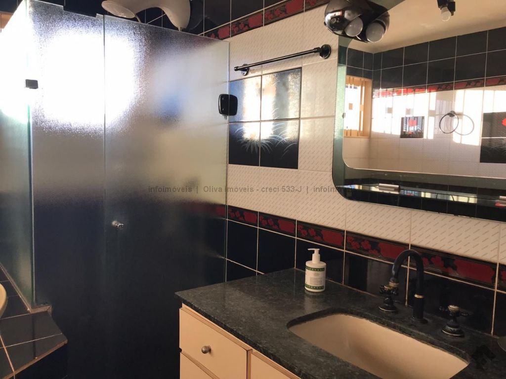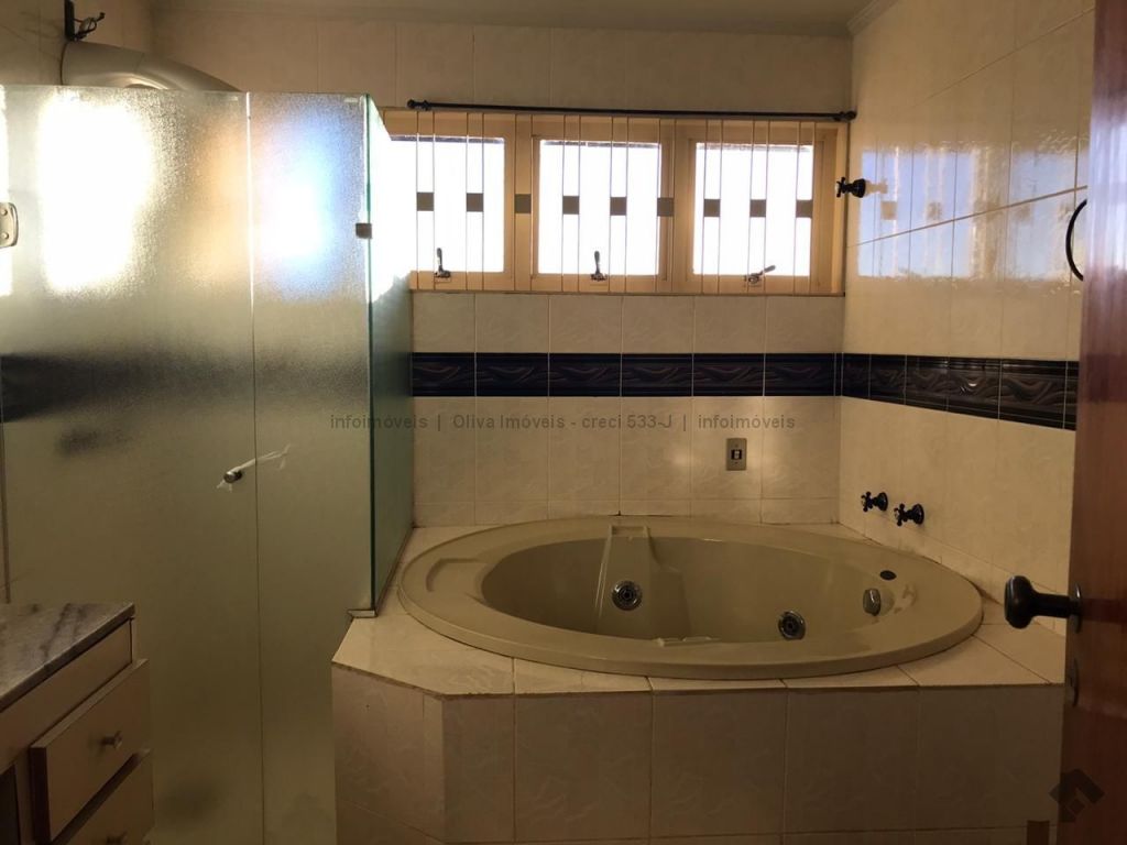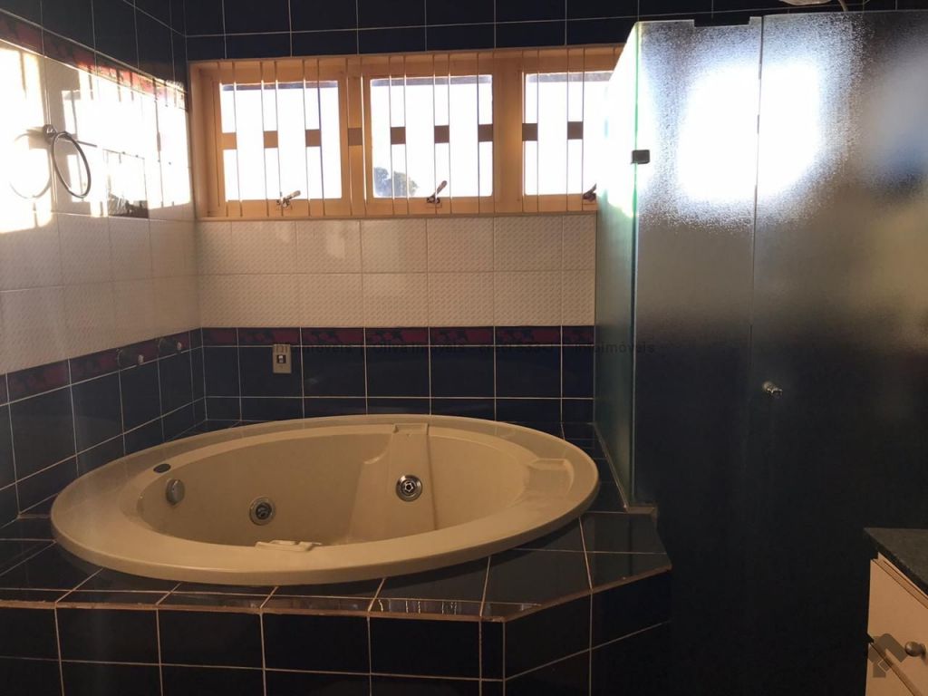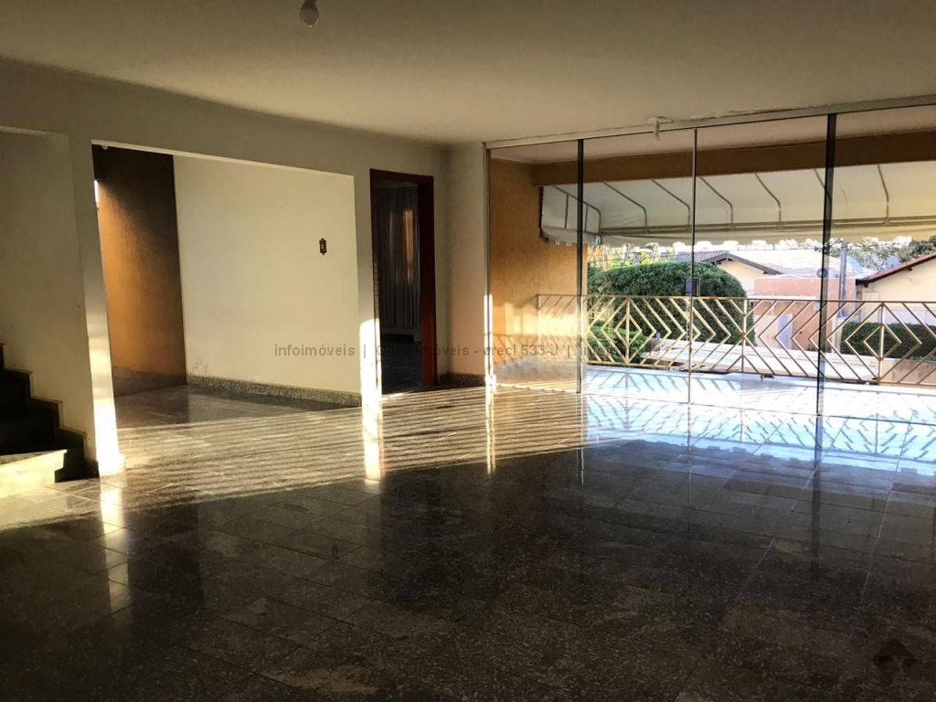 Imóvel imenso, com 4 suítes, sendo 2 com hidromassagem, na parte superior, mais um quarto no térreo, sala 3 ambientes, enorme garagem, saúna à vapor, piscina.
