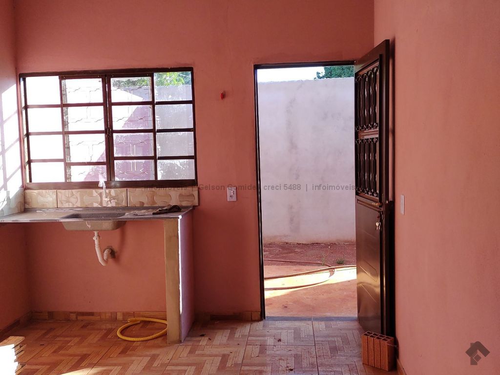 Casa nova primeiro morador, 2 quartos, sala, cozinha, banheiro, varanda, garagem e quintal.