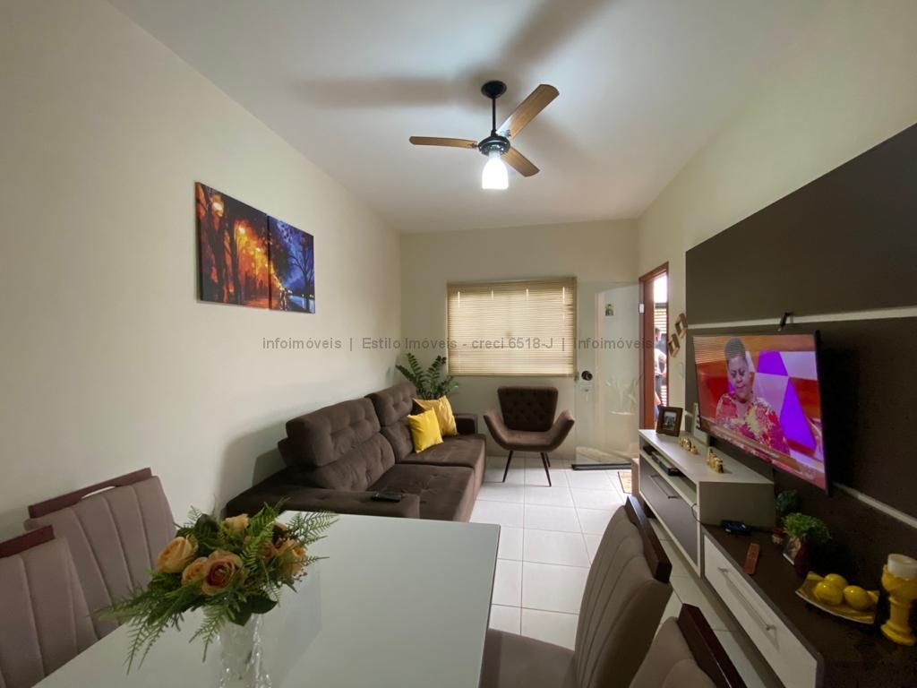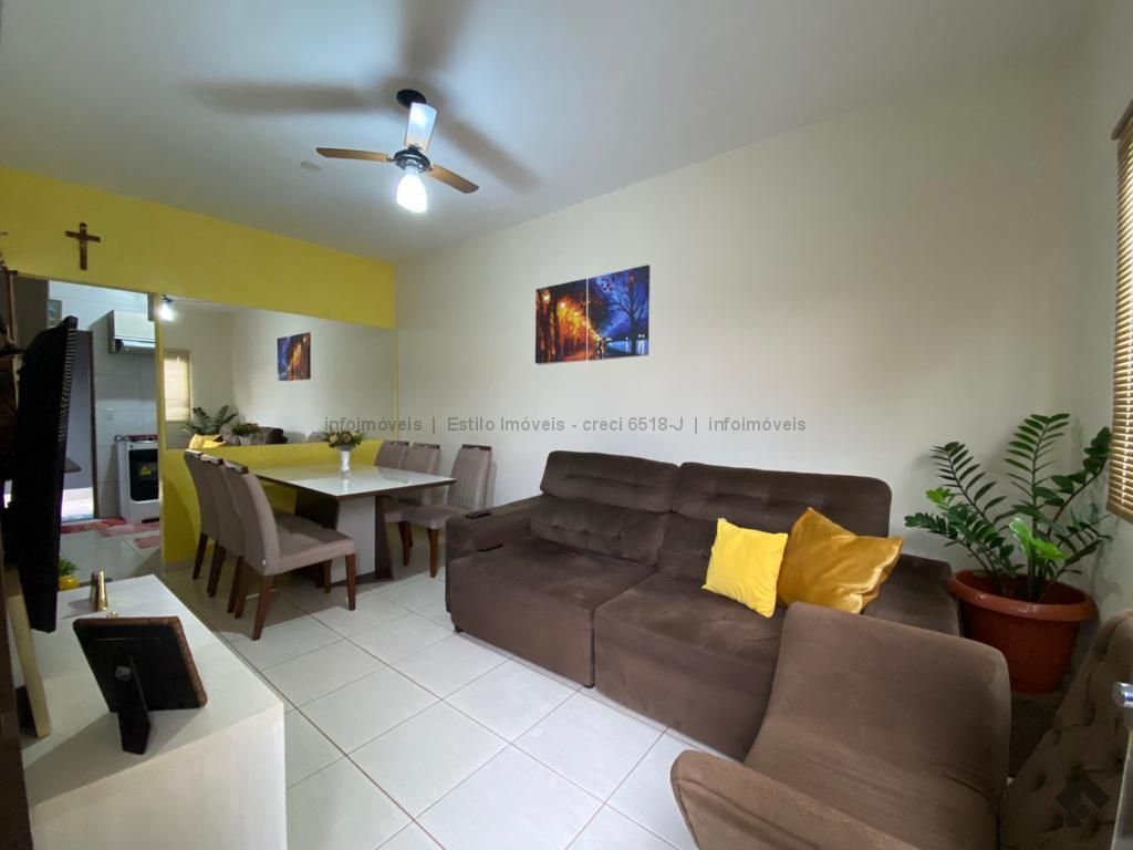 Casa com sala, 02 quartos sendo 01 com armário planejado, cabeceira da cama, criados mudos e painel de TV, cozinha planejada, banheiro social, área de serviço coberta, garagem descoberta.