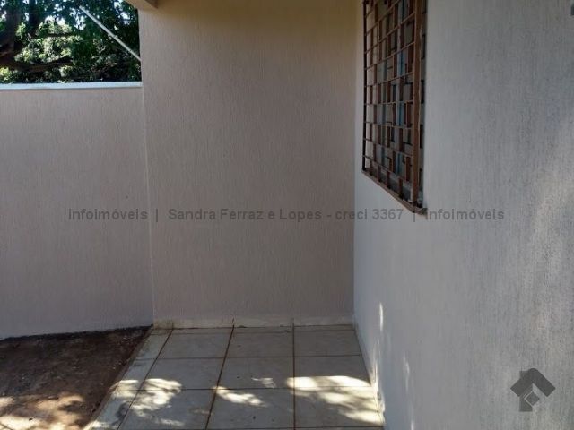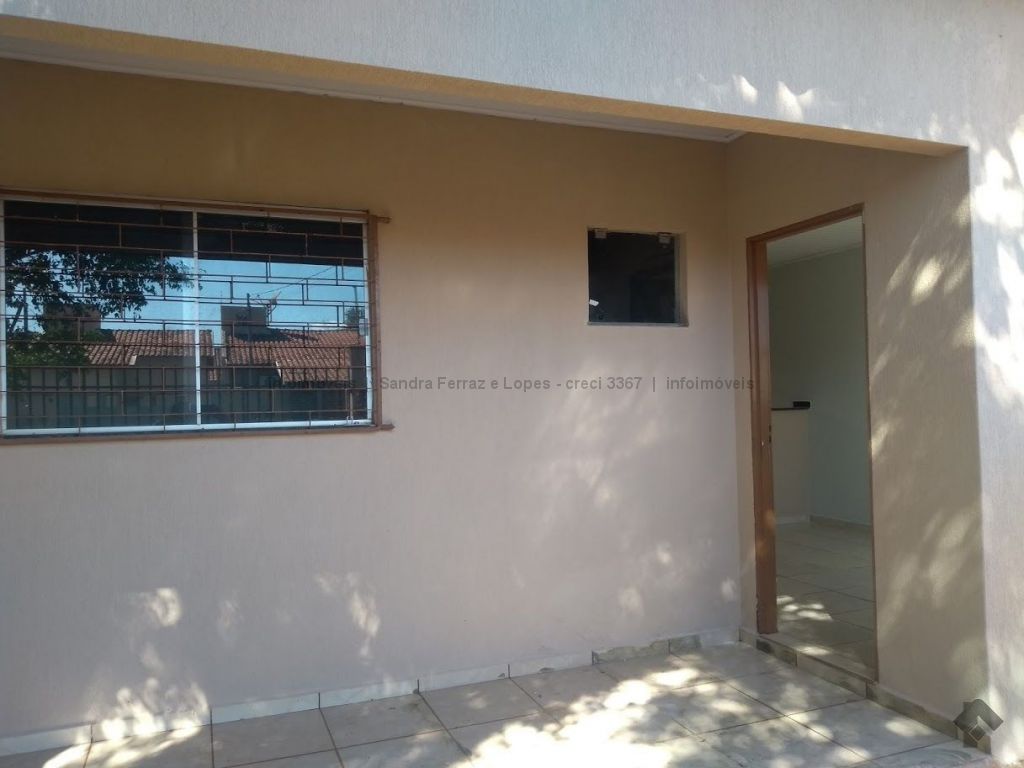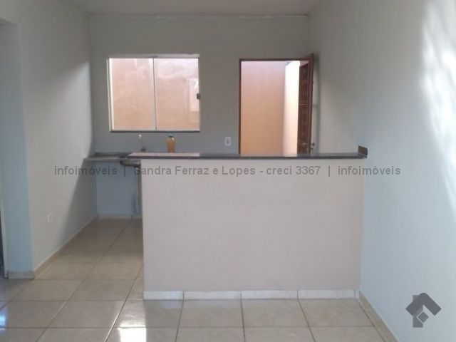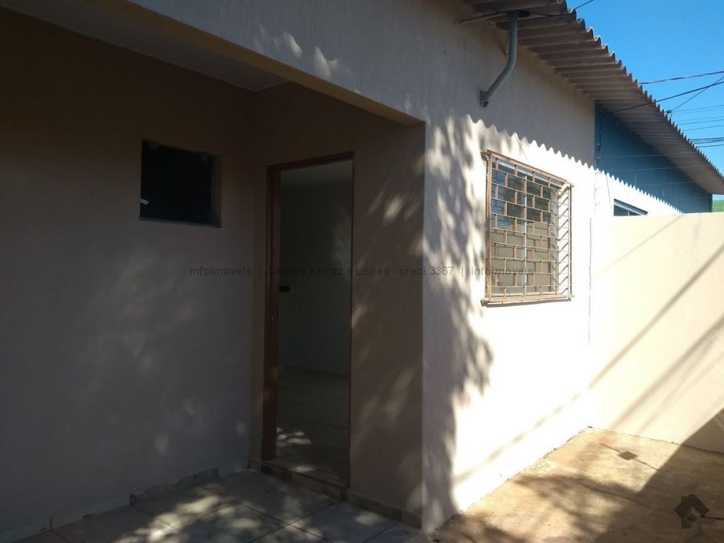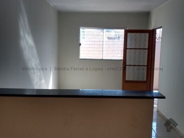 Casa com dois quartos, sala, cozinha, banheiro e lavanderia.