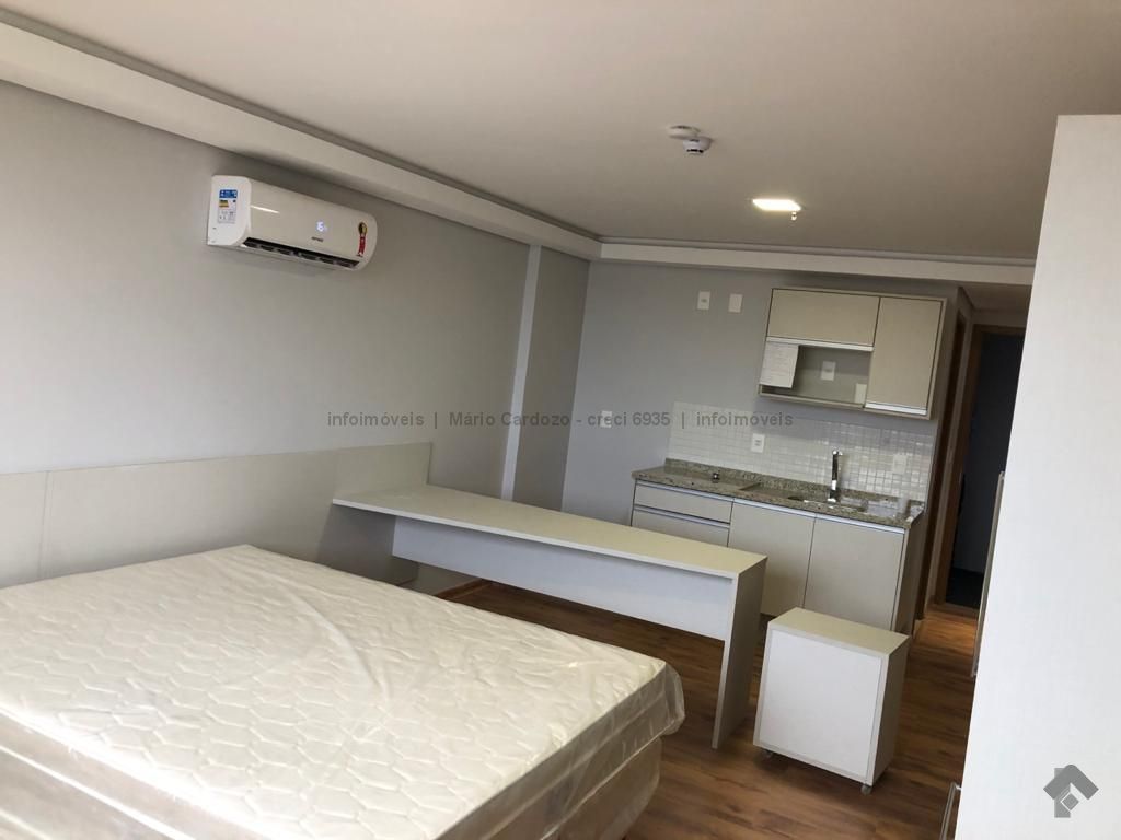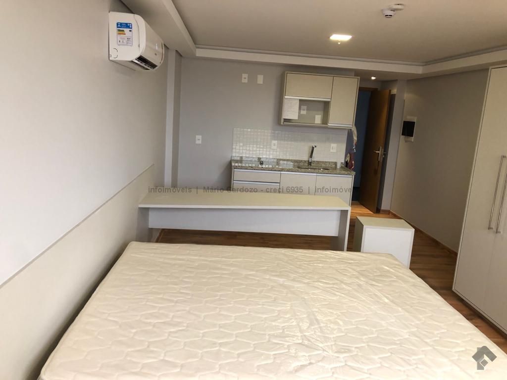 Flat no sexto andar, fundos, 1 vaga de garagem e possuí móveis planejados.