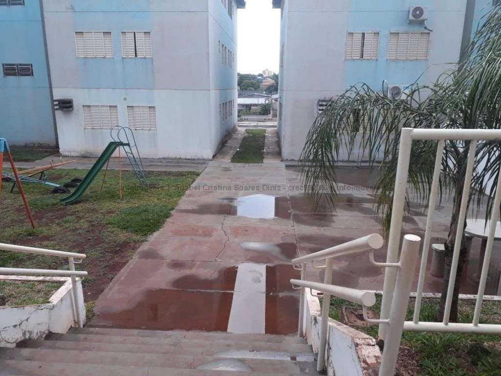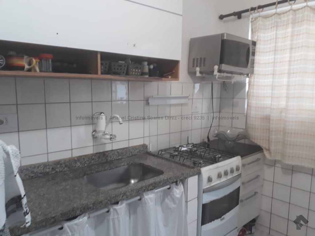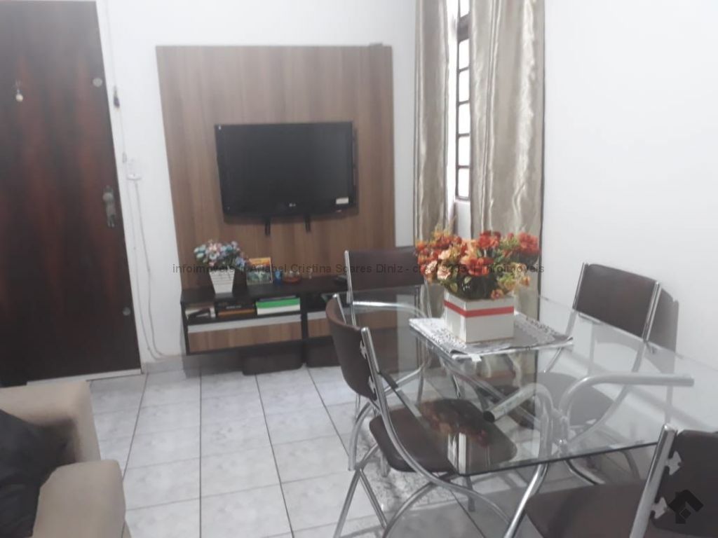 Apartamento fica no 2º andar, com 2 quartos, sala, cozinha, banheiro, área de serviço. Garagem para um carro.