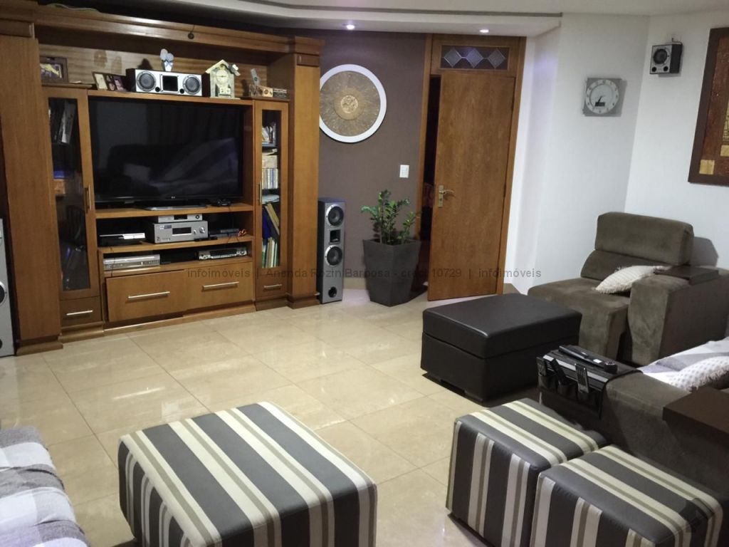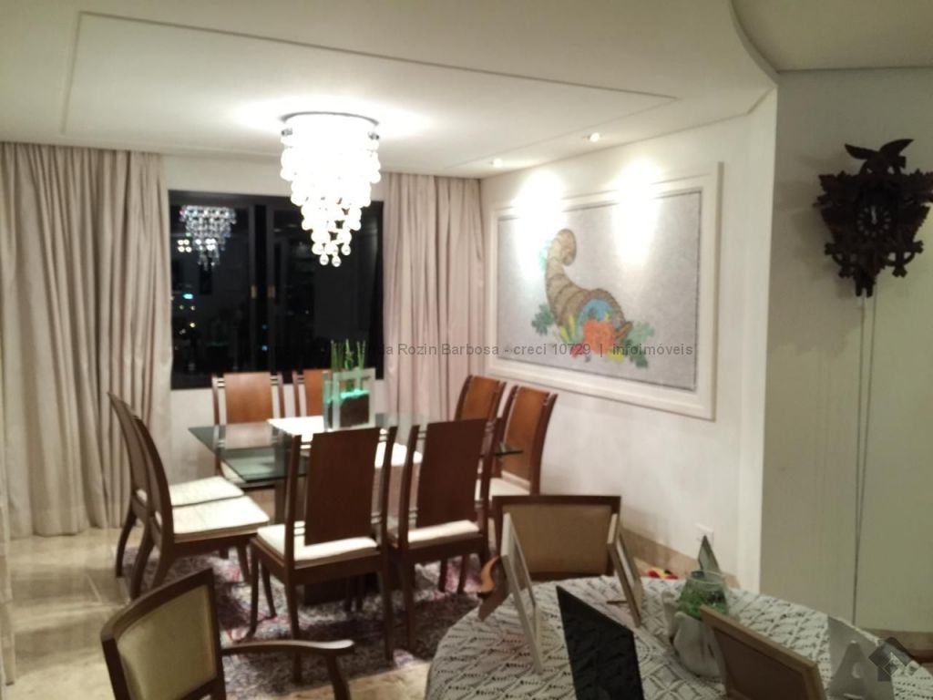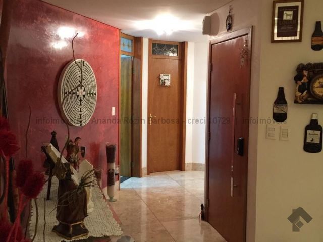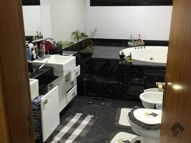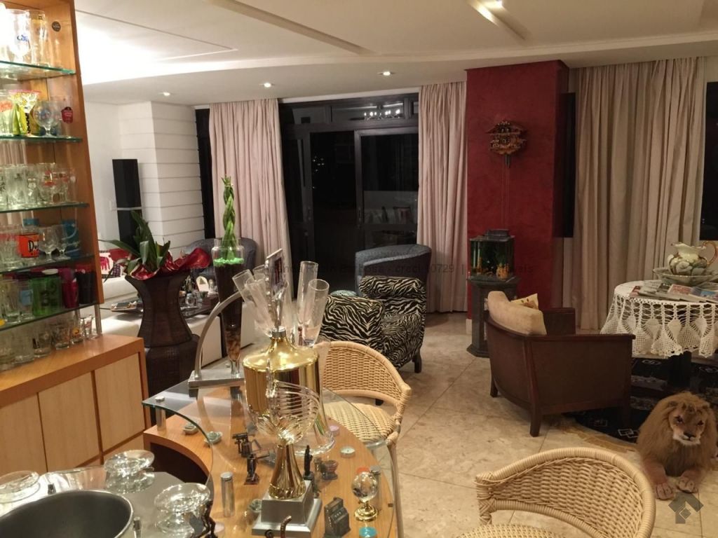 O apartamento é amplo, possui living para 3 ambientes, 2 suítes com a/e e 2 suítes master com closet a/e, destas 3 suítes com banheira de hidromassagem, 1 sala de tv, cozinha com a/e, 1 ambiente para almoço, 1 despensa, 2 quartos para funcionário, 1 banheiro de serviço e 1 lavabo. 1 escritório, 1 sacada grande e 2 nos quartos. 4 garagens de gaveta e 1 quartos de depósito individual. O condomínio possui piscinas e sauna. Espaço gourmet com churrasqueira. Salão de festa. Playground e quadras. Academia. Portaria 24 horas.