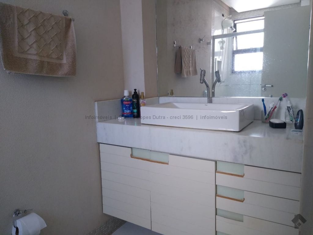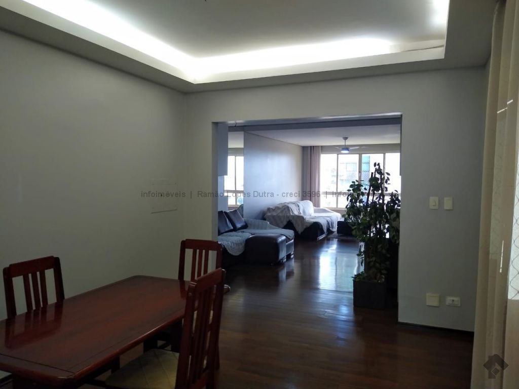 Cômodos amplos, contendo três quartos, sendo, uma suíte wc box em blindex, dois quartos, sala de estar, dois ambientes. Sala de jantar, wc social box em blindex, cozinha com móveis planejados, dependência de empregada com wc, área de serviço, salão de festa, piscina. Duas vagas de garagem-gaveta. Dois elevadores.