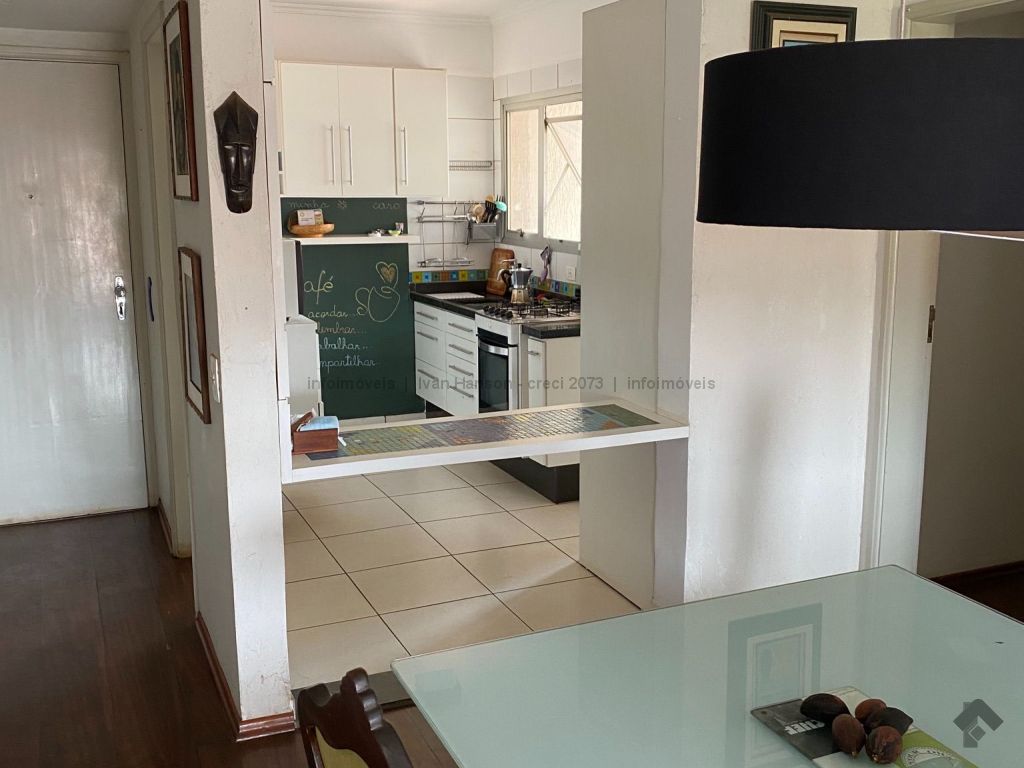 Ampla sala com sacada, cozinha americana, suíte com sacada. Ótimo apartamento.