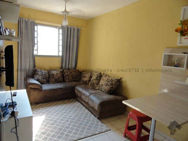 01 sala, 01 cozinha, 01 área de serviço, 01 área de circulação, 01 dormitório casal, 02 quartos, 01 banheiro social, 01 vaga de estacionamento descoberta.