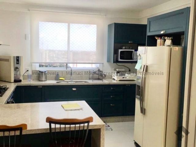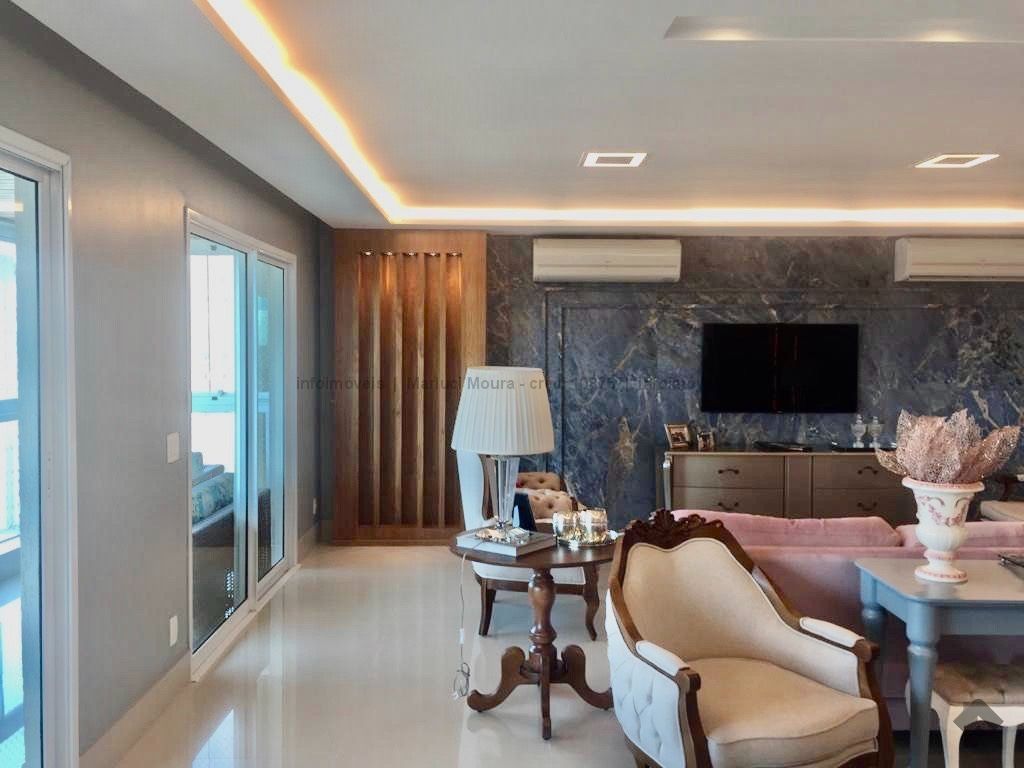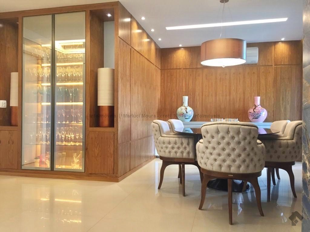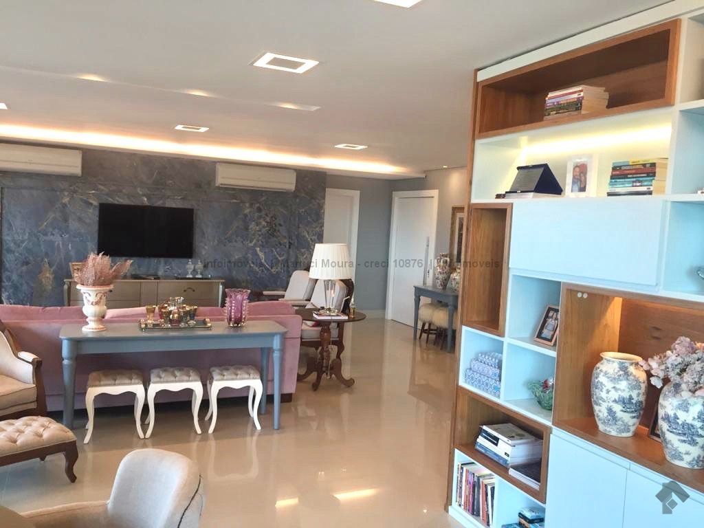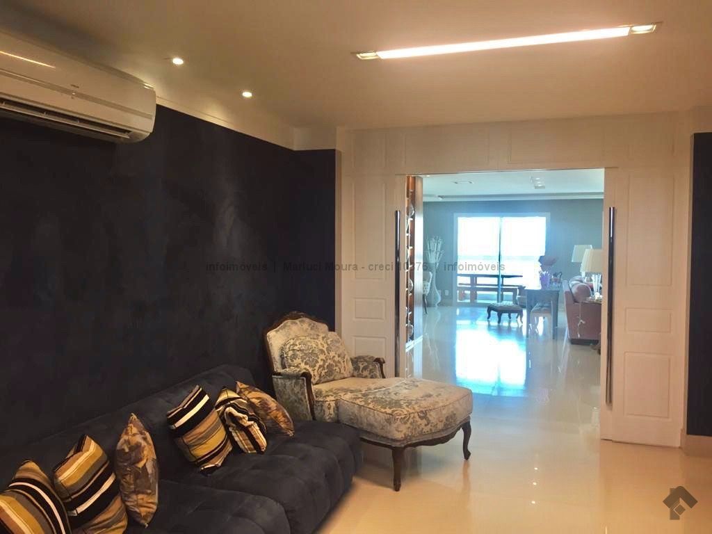Sala de estar, sala de jantar, varanda extensa com churrasqueira gourmet, lavabo decorado, 3 suítes completas e armários planejados, suíte máster e banheiro suíte máster mais closet completo e varanda sacada, sala íntima, copa e cozinha com armários de 1ª linha planejados, sala de almoço, área de serviço completa, banheiro de serviço, circulação, 2 quartos de empregada, casa de máquinas para ar condicionado. Apartamento todo decorado com armários embutidos de 1ª linha, 04 vagas de garagem. Andar alto e vista maravilhosa desta região central.
