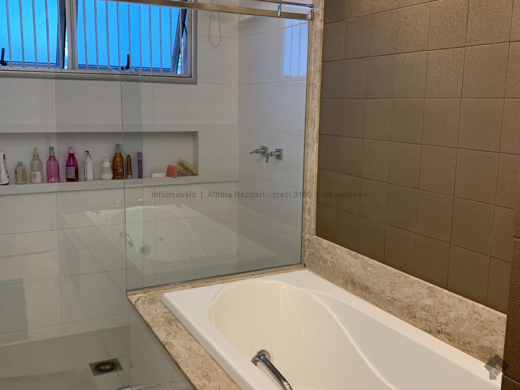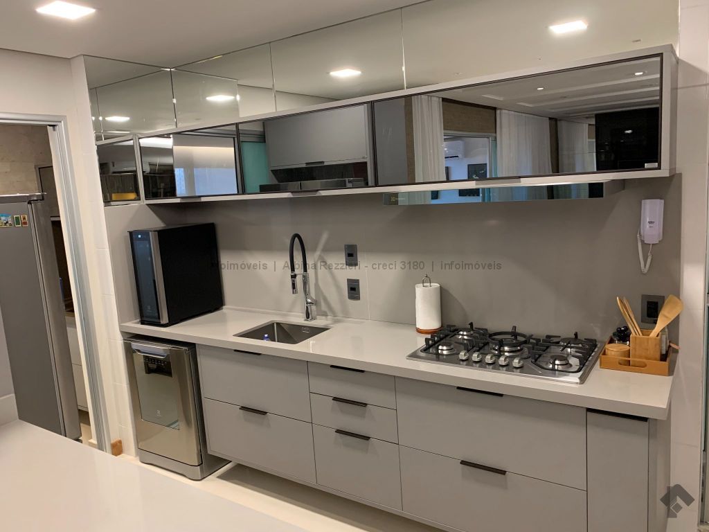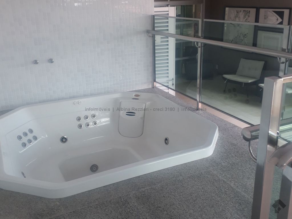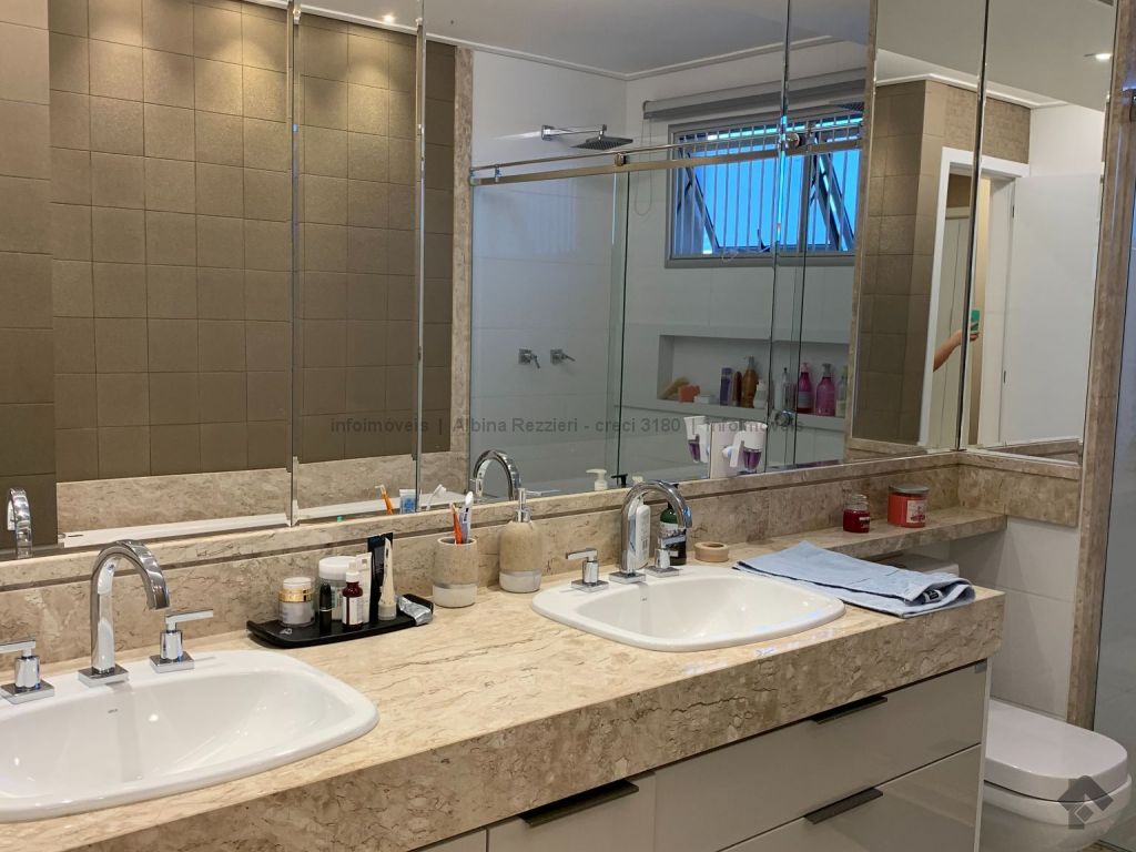 Sala três ambientes, gesso, iluminação led, ar, sala tv, painel e espelhos, sala jantar, luminária e armários, sala estar, lavabo, ampla varanda, churrasqueira, balcão, ar split, janelas sistema reick, iluminação em led, cozinha planejada, torre quente, fogão cooktop, coifa, água quente. 1 suíte master, closet, espelhos, cortinas, ar, banheiro com hidro, duas pias, armários, gesso rebaixado, iluminação. 2 apartamentos, armários, ar, wc com box, espelhos. Hall circulação com roupeiro. Área de serviço, armários, aquecedores a gás, wc de serviço.