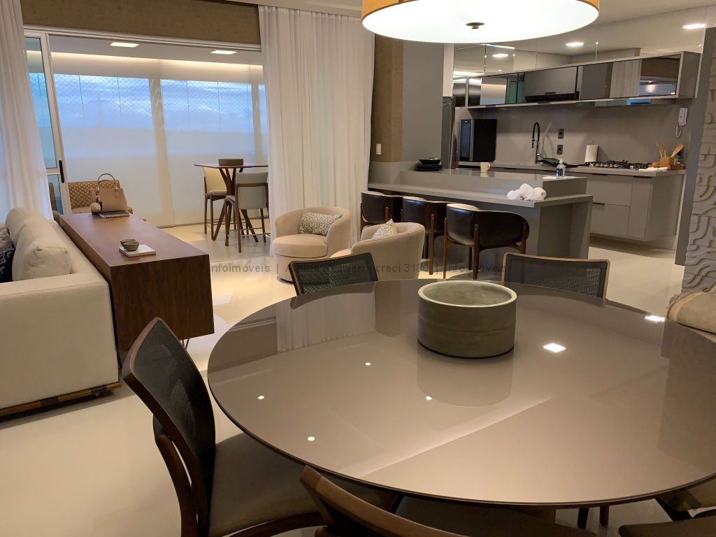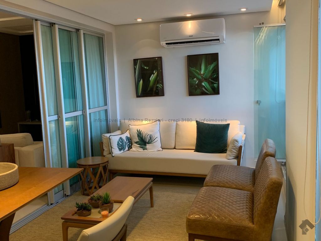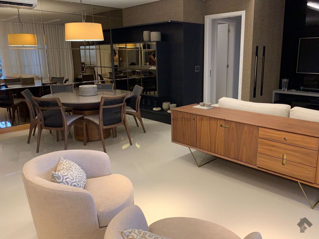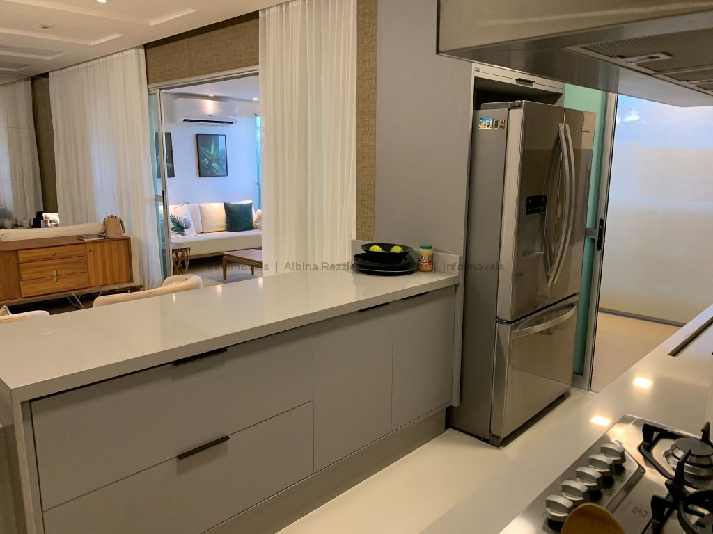 Sala três ambientes, gesso, iluminação led, ar, sala tv, painel e espelhos, sala jantar, luminária e armários, sala estar, lavabo, ampla varanda, churrasqueira, balcão, ar split, janelas sistema reick, iluminação em led, cozinha planejada, torre quente, fogão cooktop, coifa, água quente. 1 suíte master, closet, espelhos, cortinas, ar, banheiro com hidro, duas pias, armários, gesso rebaixado, iluminação. 2 apartamentos, armários, ar, wc com box, espelhos. Hall circulação com roupeiro. Área de serviço, armários, aquecedores a gás, wc de serviço.