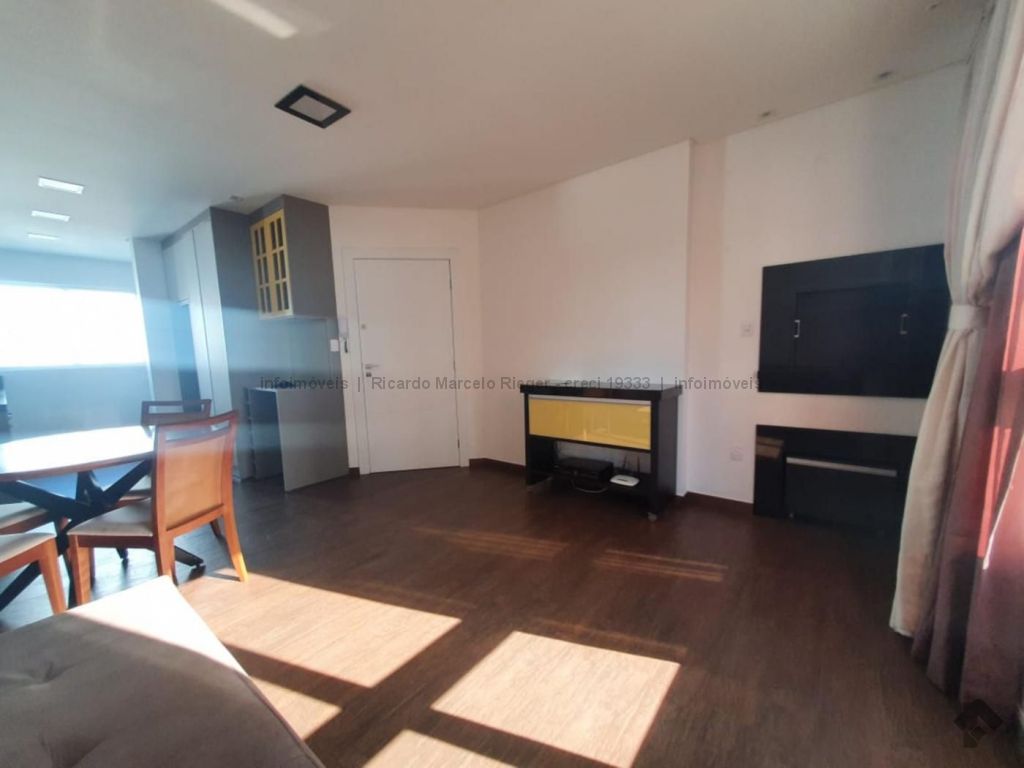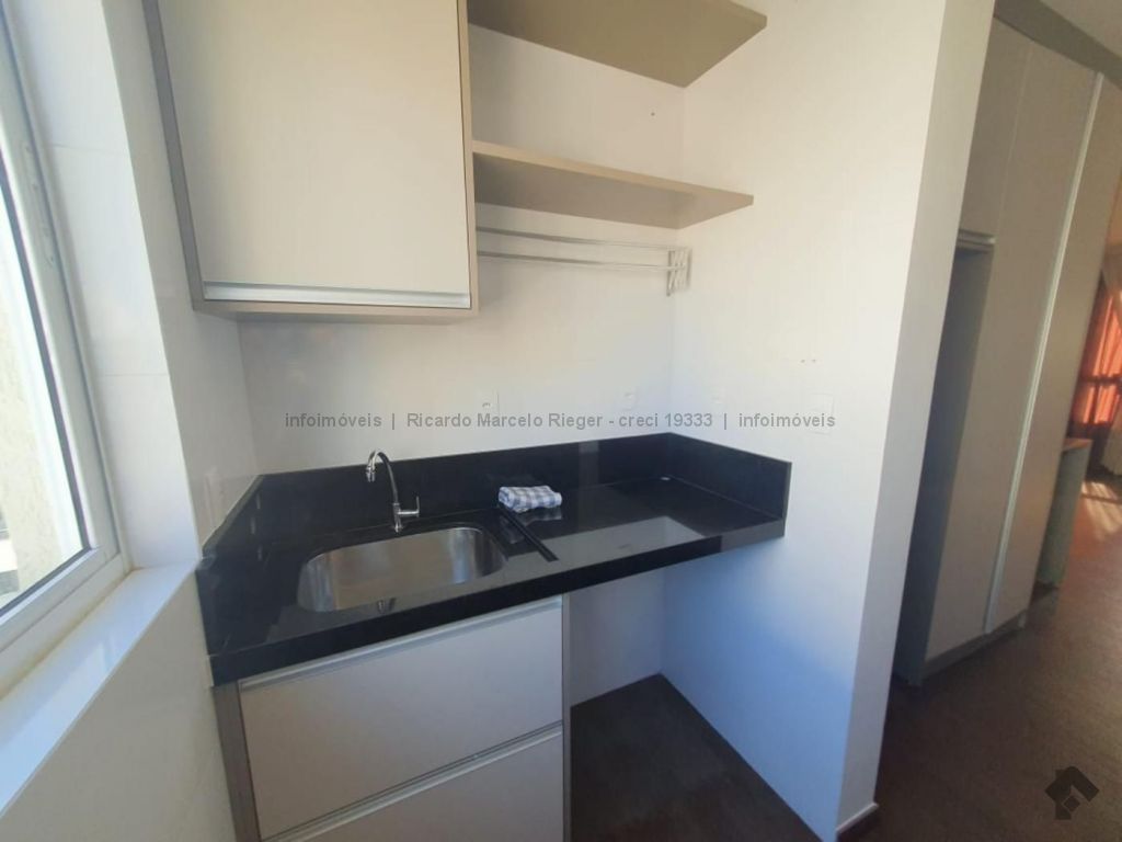02 dormitórios sendo 01 suíte, sala e sacada integradas (com churrasqueira), cozinha, banheiro, área de serviço, 01 vaga de garagem.