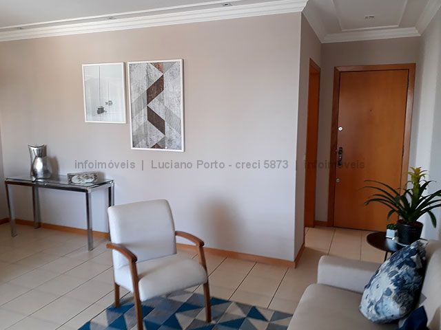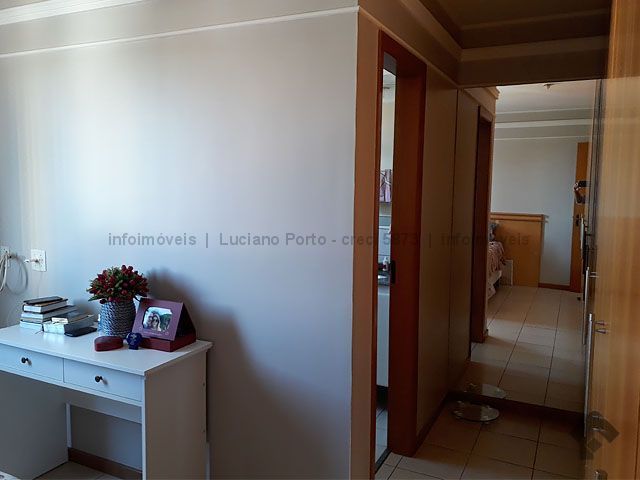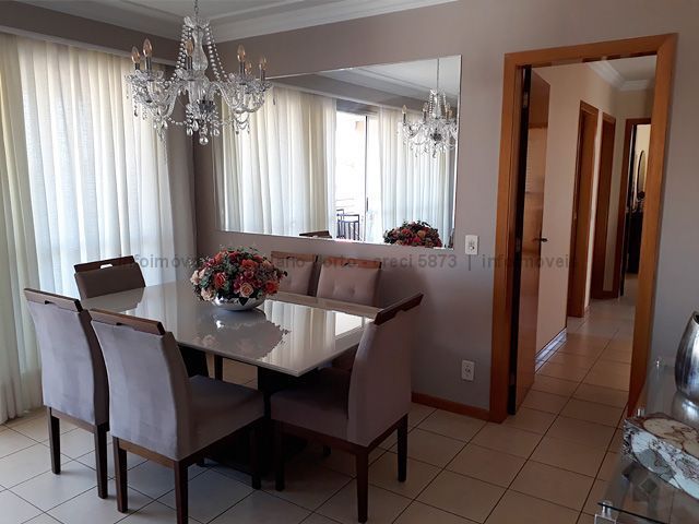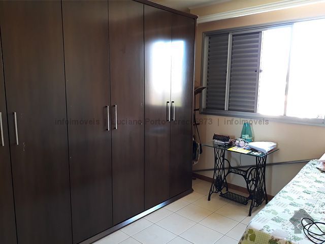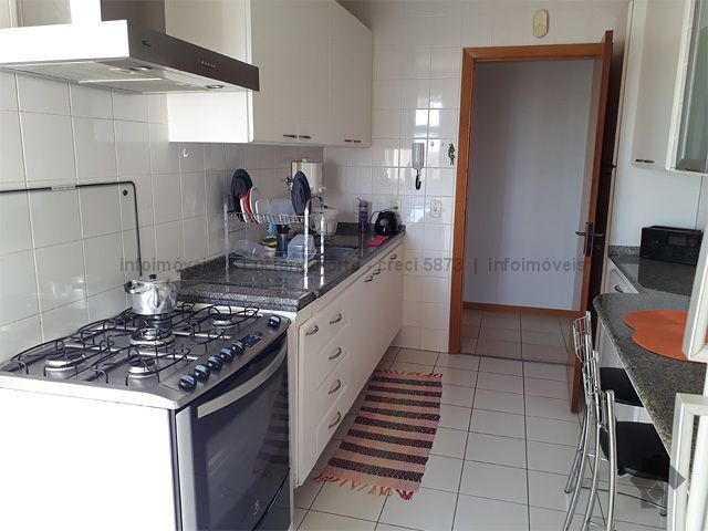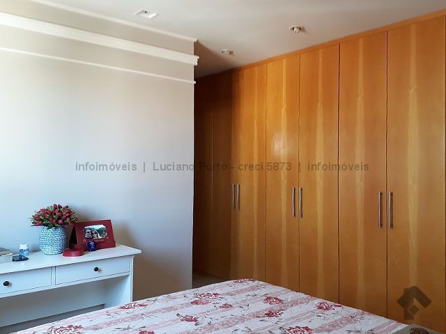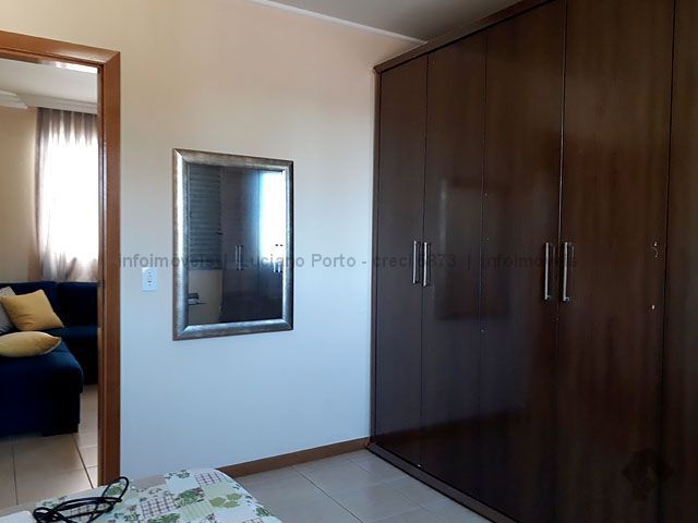 No quinto andar, vista para a cidade, em ótimo estado de conservação, com sala dois ambientes, sacada, sala de TV, suíte com a/e, dois quartos sendo um com guarda roupas grande, ar condicionado, banheiros com blindex e armários, cozinha com armários e bancadas, área de serviço com a/e e banheiro, com duas vagas de garagem. Condomínio conta com portaria 24 horas, piscinas adulto e infantil, área de lazer, parquinho infantil, quadra poliesportiva, academia, área gourmet e salão de festas.