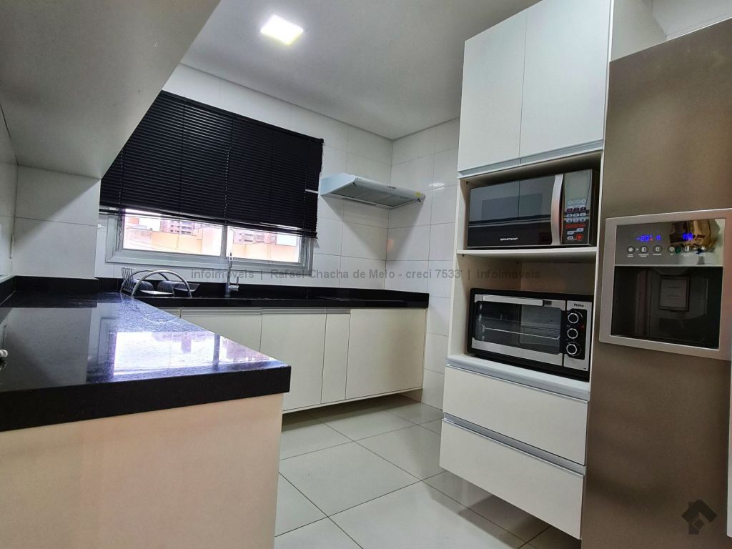 Espetacular edifício com 03 vagas de garagem no subsolo, sendo composto de três quartos, sendo 01 suíte com closet e 02 quartos com armários planejados, 04 banheiros, dependência de empregada, aquecedor de água, ar condicionados inverter na sala e quartos, cozinha com armários planejados, fogão de vidro de indução, venezianas nos quartos e sala com cortina sob medida, acabamento em gesso em 3D, tudo incluso.