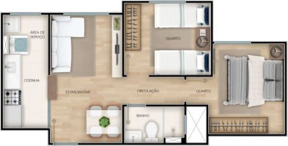 Lindo apartamento, em um torre de 7 andares, 2 quartos, 1 banheiro, sala, cozinha estilo americano, lavanderia, piso em laminado de madeira, uma vaga de garagem, elevador, área de lazer completo com piscina, área verde, para pomar, playground, gazebo, espaço gourmet.
