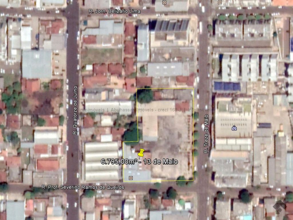 Esquina, com 102m de frente para a rua 13 de Maio.