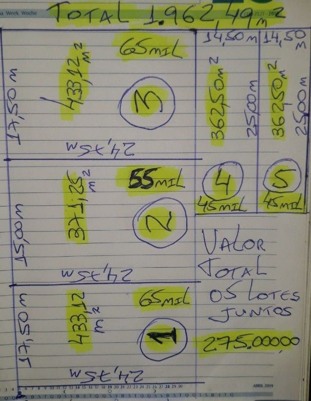05 lotes todos juntos, murado, 02 de esquina e 03 meio de quadra. Estuda se propostas. Não aceita permuta.