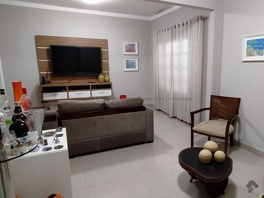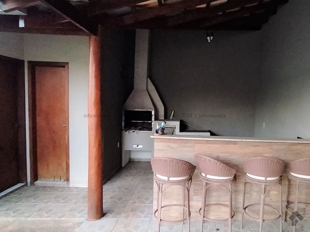 Casa versátil, segura e com muito espaço. Possui 1 suíte, 2 quartos, sala ampla dois ambientes, lavabo, banheiro social, despensa, cozinha e um varanda enorme que segue até uma edícula com churrasqueira, fogão a lenha, banheiro.