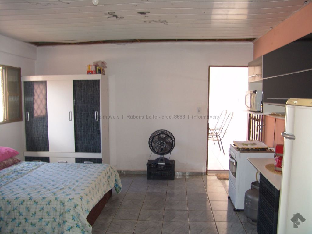 Trata-se de uma casa térrea, com área construída de aproximadamente 126m², dos quais possui um salão comercial de aproximadamente 30 m², com banheiro social. A casa é composta de sala, cozinha, um banheiro social, dois quartos sendo uma suíte, varanda aos fundos da edificação da casa, duas piscinas uma Adulta e uma infantil. Aos Fundos do terreno encontra-se edificada uma edícula de aproximadamente 24 m², composta por um quarto e um banheiro, todas com padrão construtivo médio antigo, em estado de conservação que podemos caracterizar como regular, porém como as modificações não foram averbadas mediante a escritura, não esta passivo de financiamento. Tem edificado ao lado um pequeno salão comercial com acesso a casa.