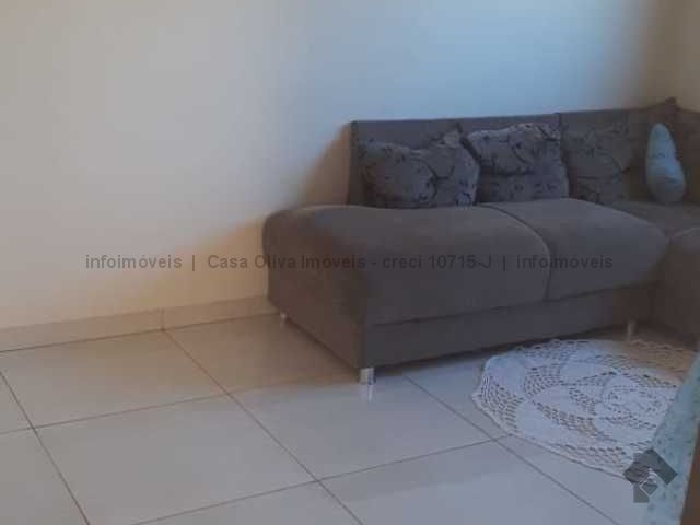 Com 2 quartos, sala, cozinha, banheiro e área de serviço externa.