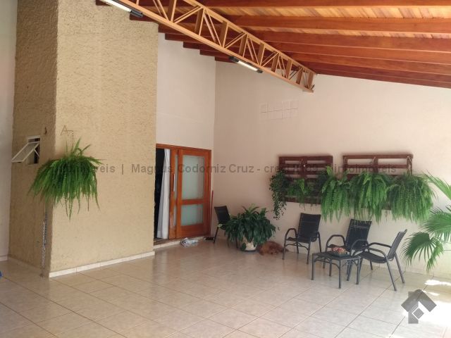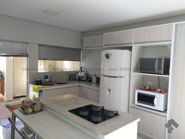 Casa com garagem para 3 carros, sala para 2 ambientes, 1 lavabo, 1 apartamento com a/e e ar condicionado, 1 quarto com a/e e ar condicionado, 1 quarto com ar condicionado, jardim de inverno, cozinha planejada, lavanderia coberta e 1 wc de serviço.