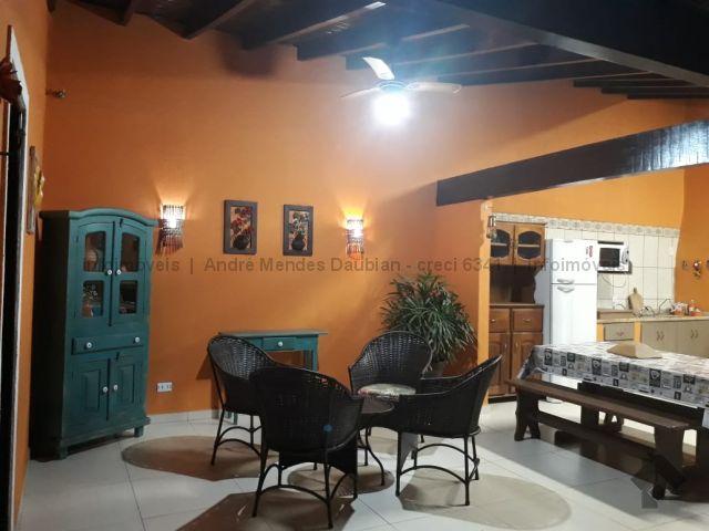 Casa composta por 01 suíte com closet, 02 quartos sendo todos com armários planejados e aparelhos de ar condicionado, 01 banheiro social, sala de tv, sala de jantar, cozinha com cooktop, planejados e bancadas em granito, área de serviço, ampla varanda, garagem para 04 carros, área de lazer completa com piscina, churrasqueira, fogão e forno a lenha, lavabo e despensa. Muitas árvores frutíferas.