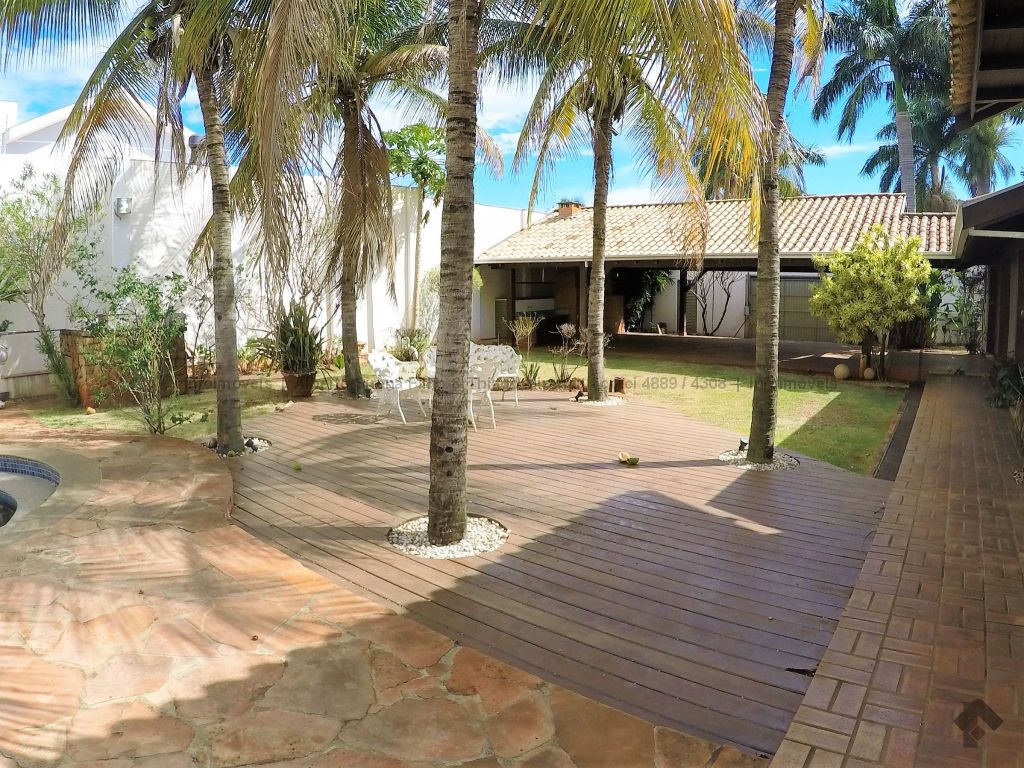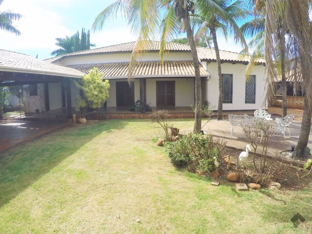 Casa térrea com amplo terreno e linda área de lazer. Em rua sem saída com total segurança e privacidade. Muito bem construída com lindo madeiramento. 03 suítes + 02 apartamentos. Guarita, depósito, escritório, copa e cozinha planejada, churrasqueira e Linda Piscina. Linda Varanda integrada com o lazer. 06 vagas de garagem.