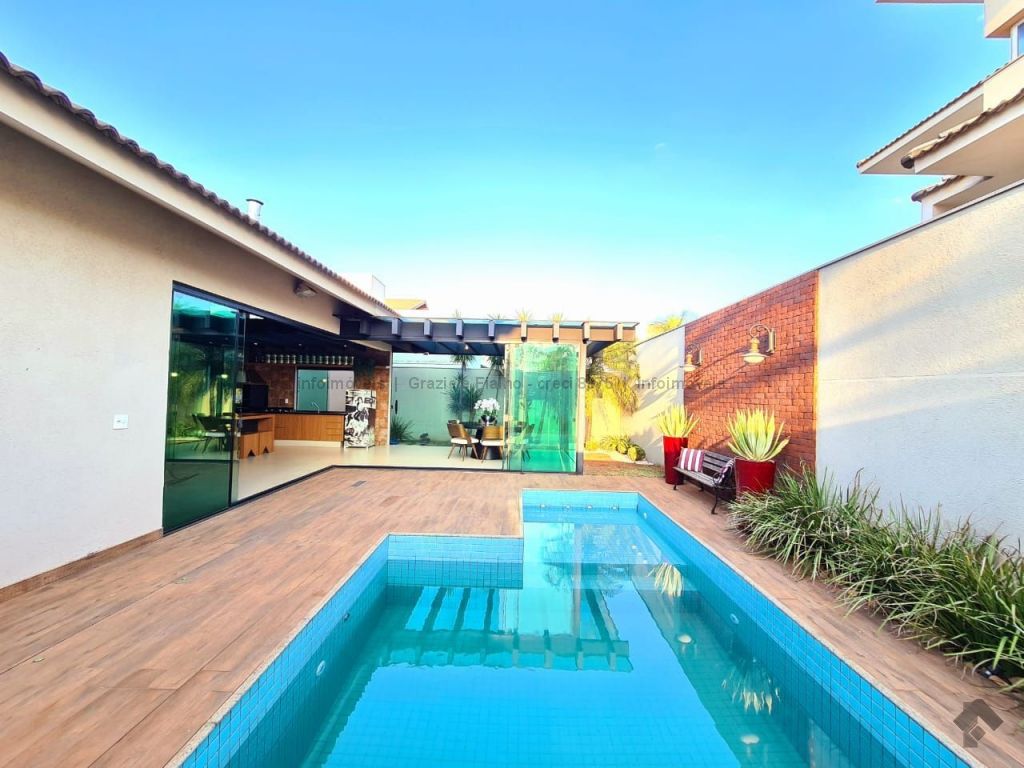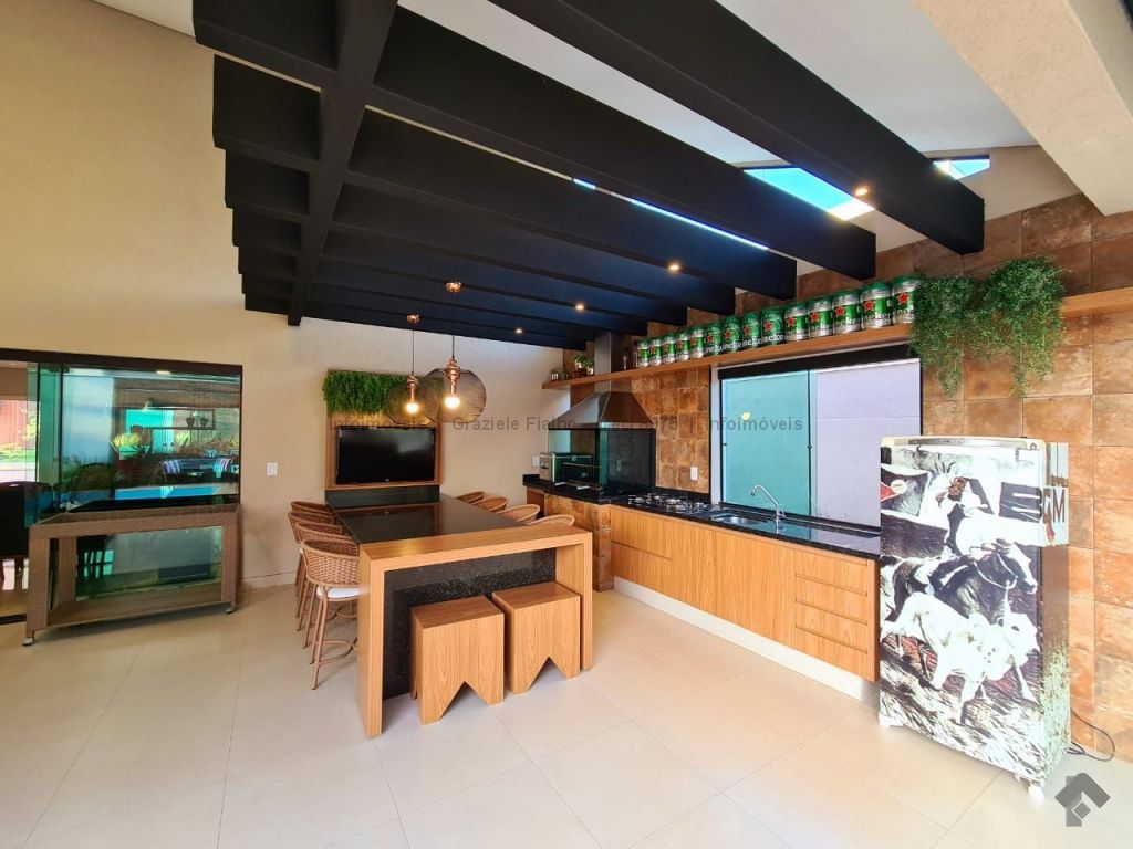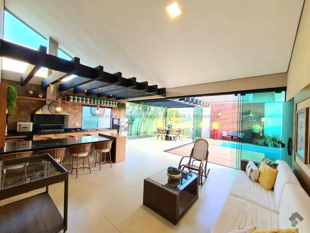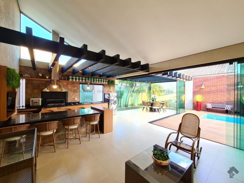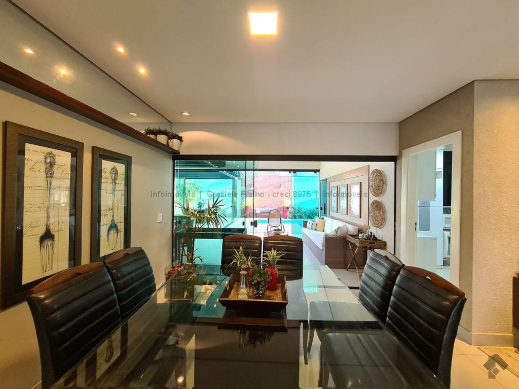 Hall de circulação, sala ampla com 03 ambientes, cozinha toda planejada, lavabo, 03 suítes sendo uma com closet, varanda gourmet ampliada, piscina aquecida, banheiro externo. Sistema de energia fotovoltaica e paisagismo completo.