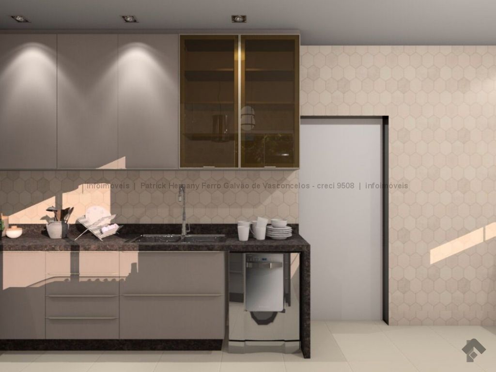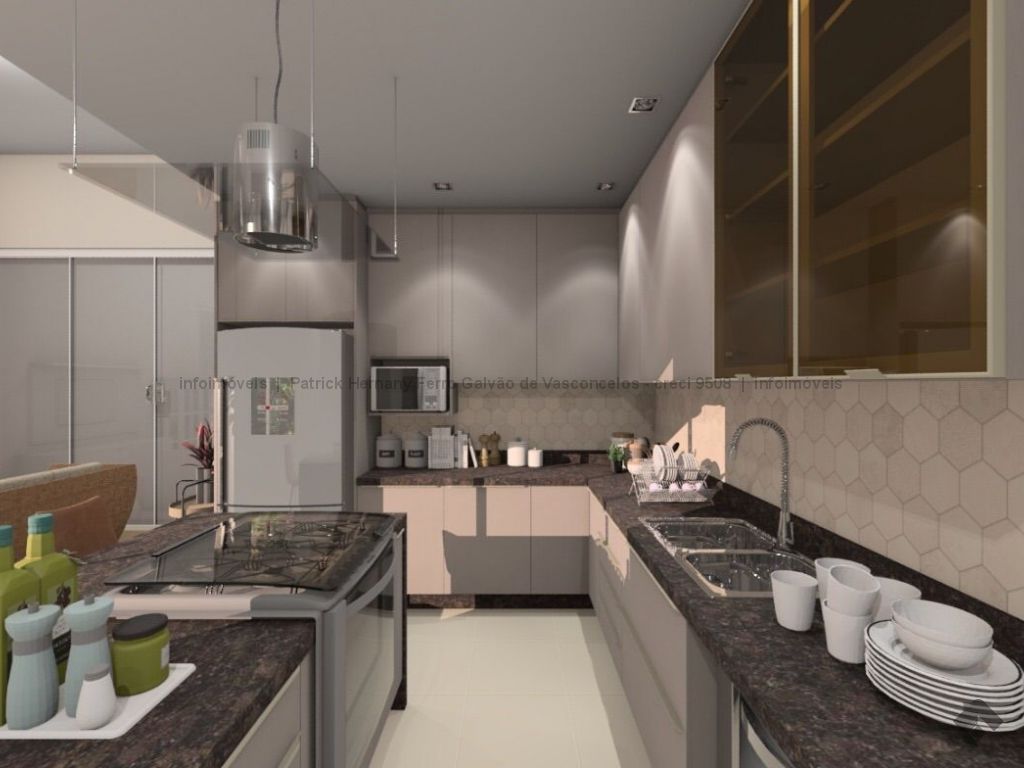 Projeto como cômodos amplos. Cozinha, sala e varanda gourmet integrados. Parte alta do condomínio.