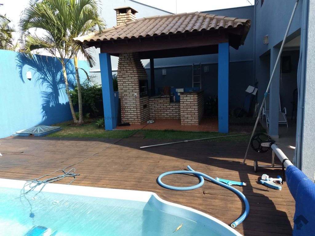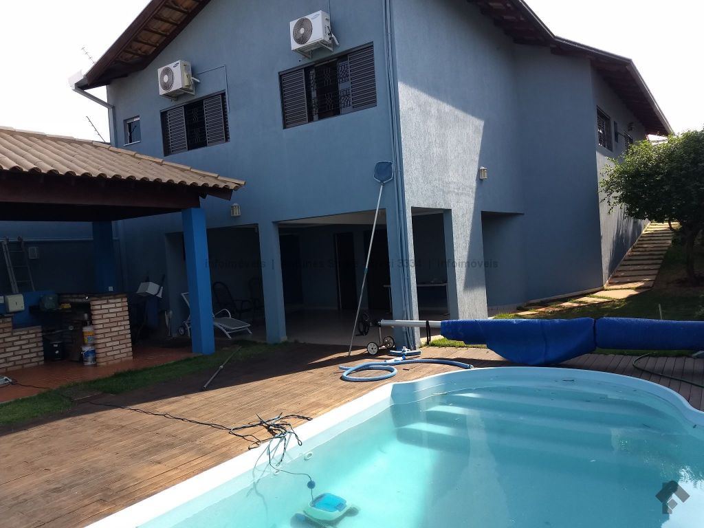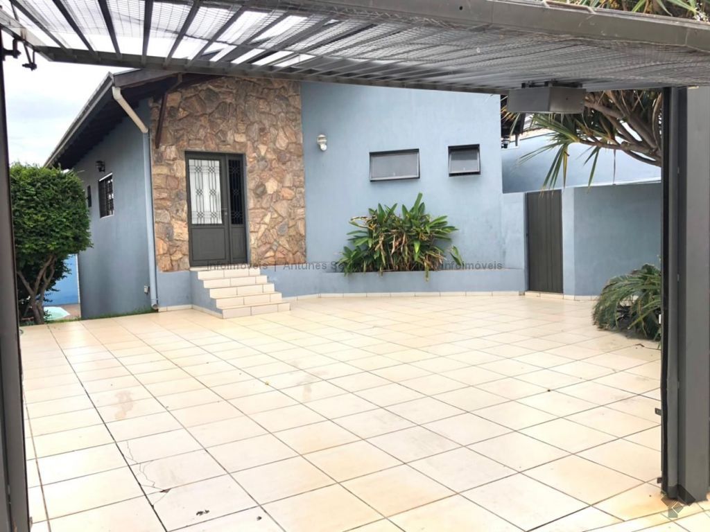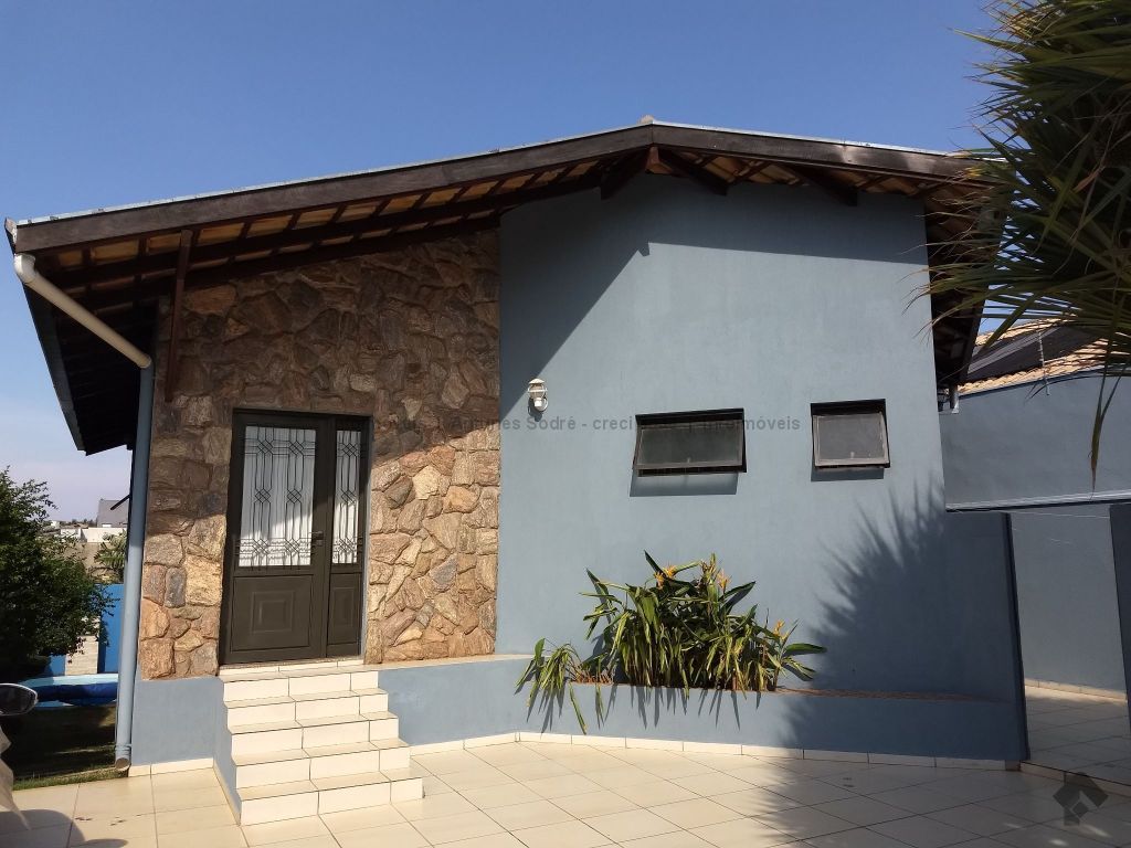 Linda casa térrea com área de lazer, varanda, quiosque com churrasqueira, piscina aquecida e com cascata em terreno declinado proporcionando estilo diferenciado de arquitetura, paisagismo com árvores frutíferas sendo pitanga, acerola, jabuticaba e bananeira.