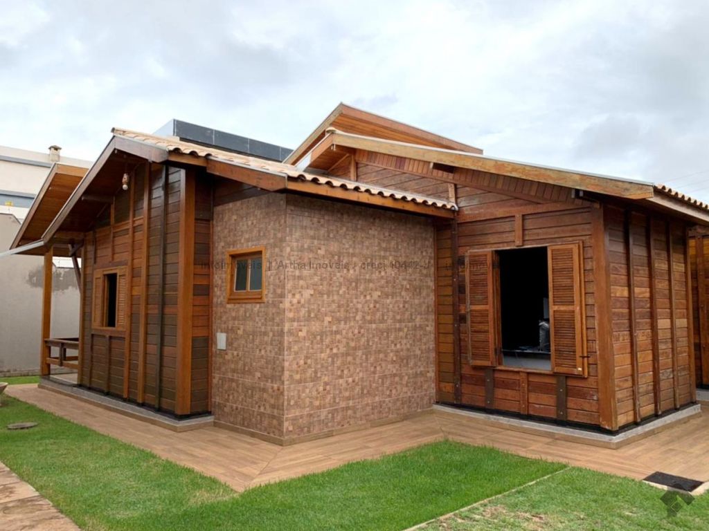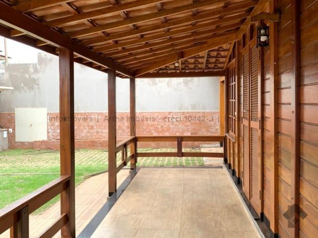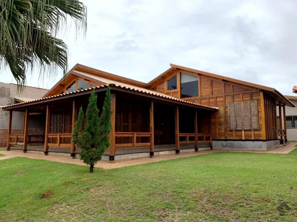 Casa térrea de madeira, contendo, 02 quartos, 01 suíte, wc social, sala de estar, cozinha com armários, área de serviço, churrasqueira, varanda. Casa dos fundos, possui, sala de estar integrada com sala de tv, apartamento, cozinha americana com churrasqueira, lavanderia, banheiro social.