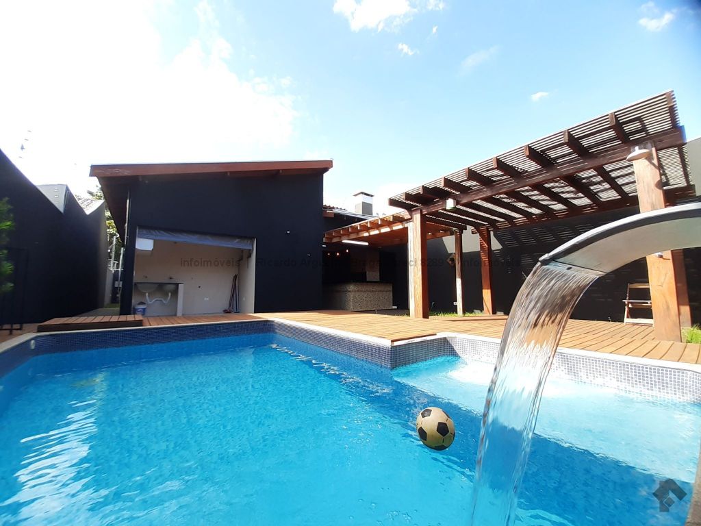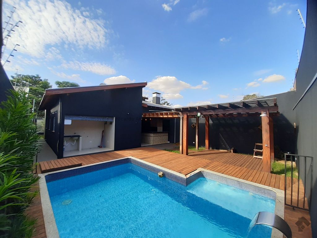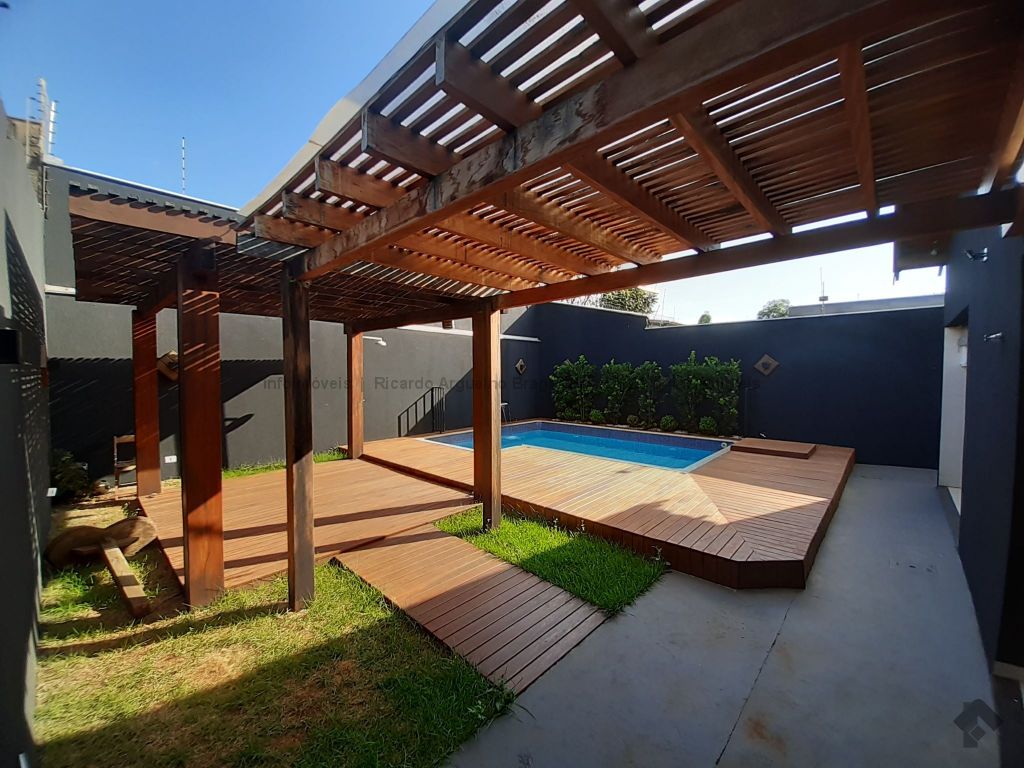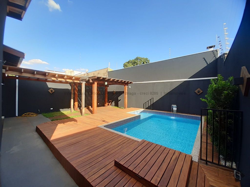 Casa seminova, apenas 4 anos de construção. Fachada moderna com garagem em madeiramento, garagem coberta para 2 carros mais 1 vaga descoberta. 147m² de área construída por 275m² de terreno, toda no porcelanato polido, sala dupla com rebaixamento, cozinha planejada com pia de mármore em L com coocktop, 3 quartos sendo suíte com closet, pias e louças de primeira, espaço gourmet coberto com churrasqueira revestida no porcelanato, pia de mármore e bancada e marmorado. Deck em madeira com pergolado e piscina de 3x5 com hidro prainha e cascata e sistema de limpeza no ozônio (sem cloro). Pintura externa toda no granelle. Casa espetacular.
