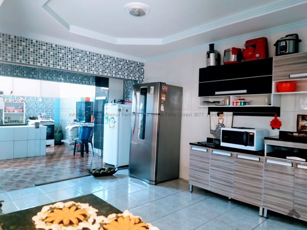 01 sala de estar, 01 sala de jantar, 01 sala de tv, 05 quartos (sendo 2 apartamentos), 01 cozinha planejada, 01 copa, 01 despensa, 01 banheiro social, 01 banheiro de serviço, 01 varanda, 01 lavanderia, 01 quarto empregada, 01 área de serviço, garagem para 4 carros ou mais, jardim, cerca elétrica, interfone, salão de festas 6x13 forro pvc, forro de laje. Medidas frente: 16m, fundo: 15m, esquerdo: 34,84m, direito: 29,64m. Terreno todo calçado, casa de esquina.