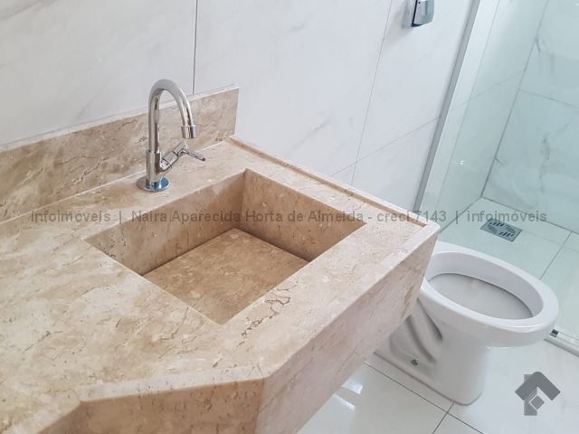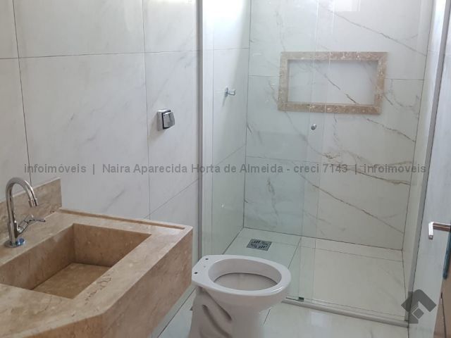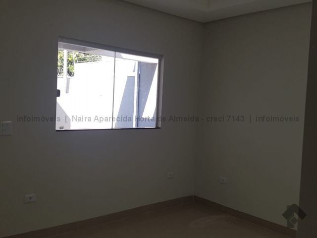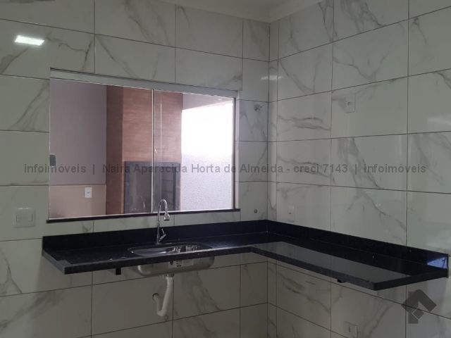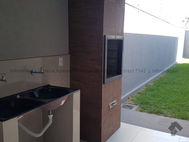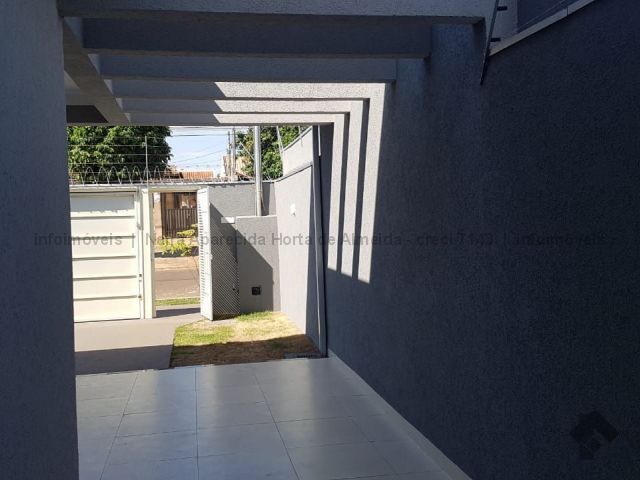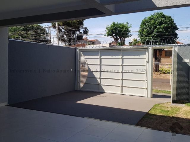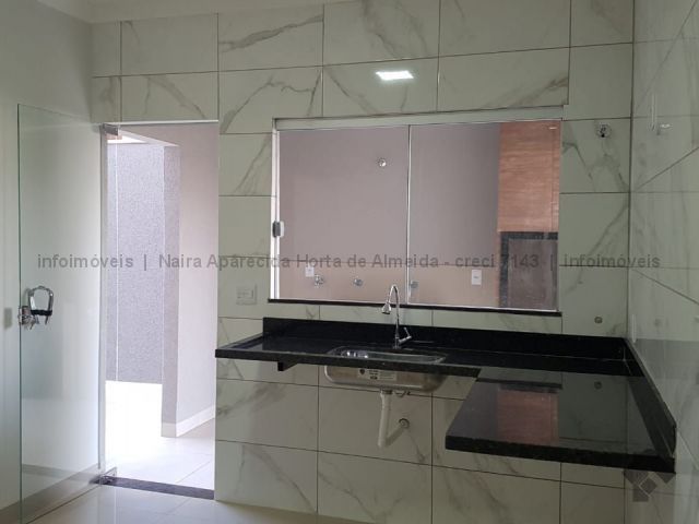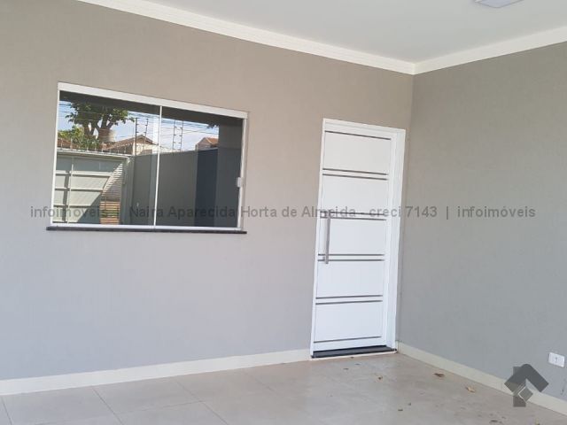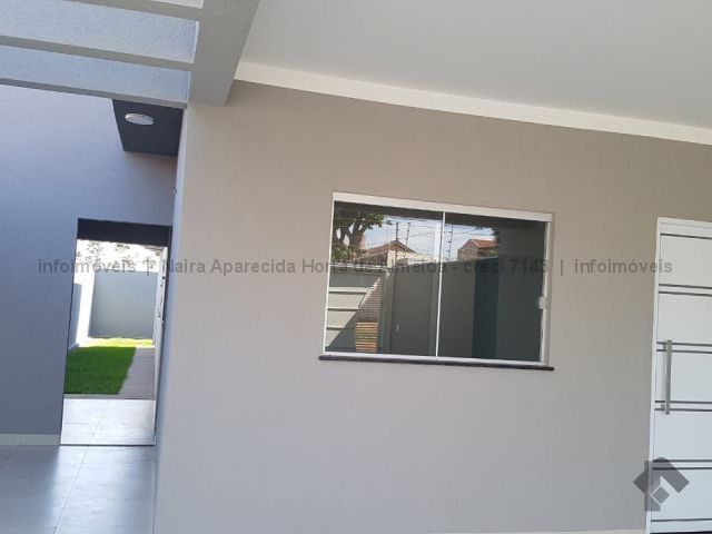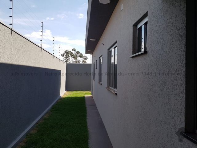 Casa nova com excelente acabamento, com sala, cozinha, 1 suíte, 2 quartos, banheiro social, lavanderia coberta, churrasqueira e quintal fundos. Duas vagas cobertas, uma descoberta. Acabamento em madeira peroba, mármore travertino, sanca de gesso e iluminação em Led, banheiros com box, alarme, instalação para ar condicionado, cerca elétrica, portão de elevação com motor.