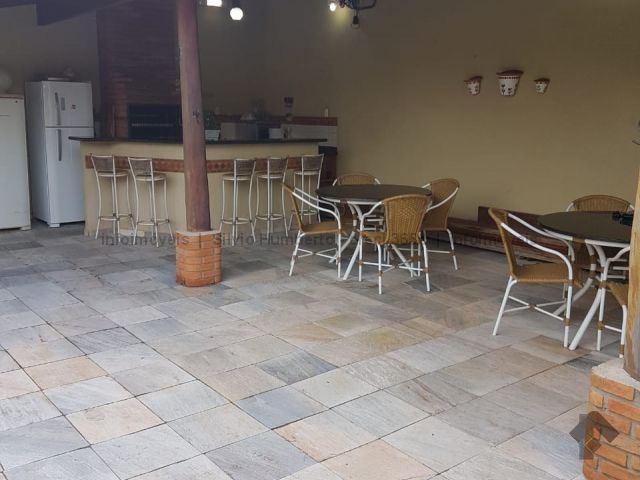 Sendo uma casa com várias salas, 3 dormitórios, escritório, lavabo, cozinha com armários, área de serviço, lavanderia coberta, dependência de funcionário. Anexo à casa, está a área de lazer; piscina, varanda, churrasqueira, pia, balcão, sauna, paisagismo. Imóvel em ótimo estado de conservação, só precisa de atualização.