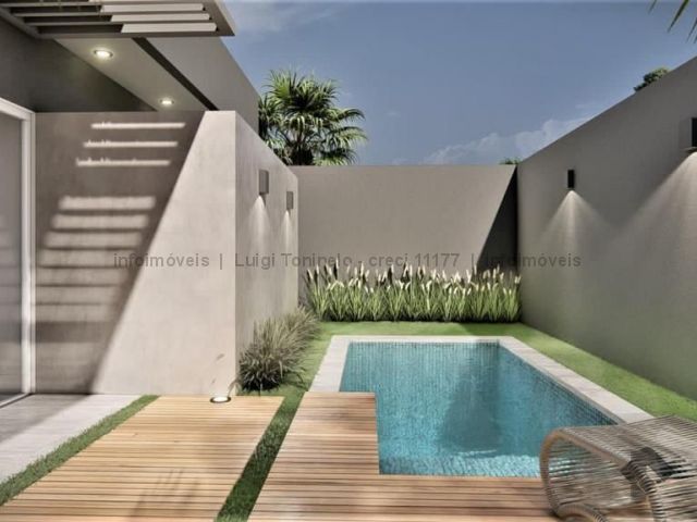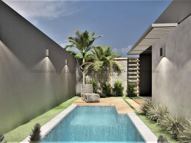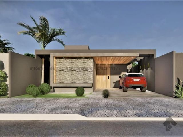 Casa térrea com excelente aproveitamento do terreno, projeto moderno, possui sala, cozinha integrados, 1 suíte e 2 quartos, banheiro social, garagem.