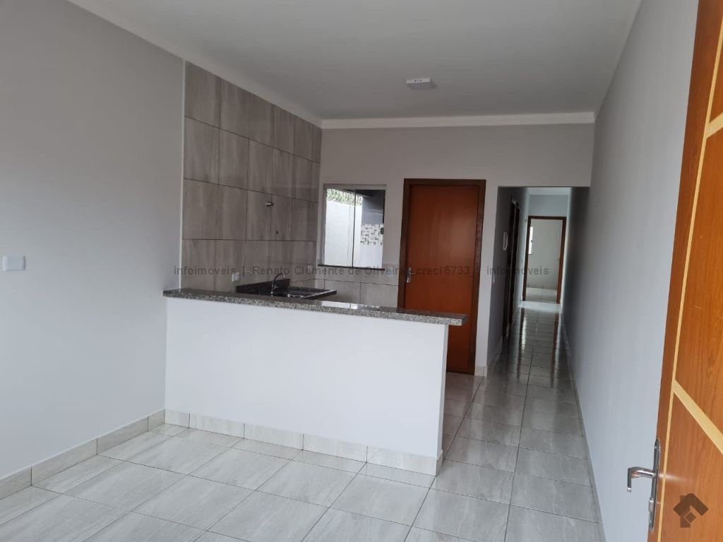 O imóvel é constituído por sala, cozinha, área de serviço coberta, 02 quartos sendo 01 com banheiro, banheiro social, vaga para 02 carros descoberta.