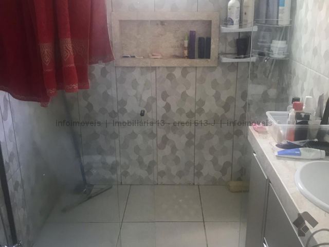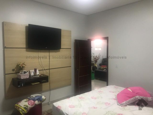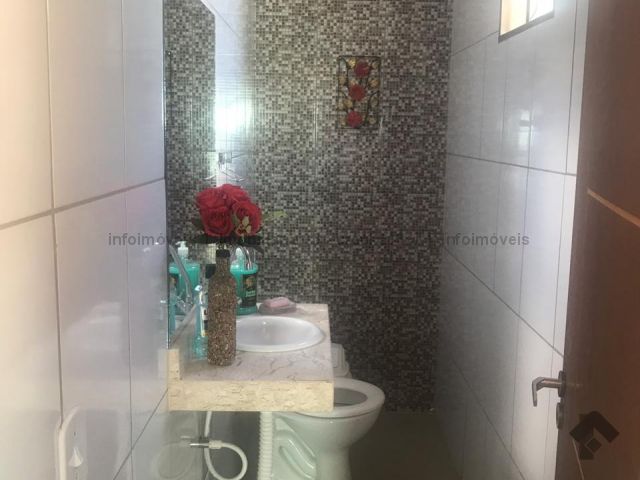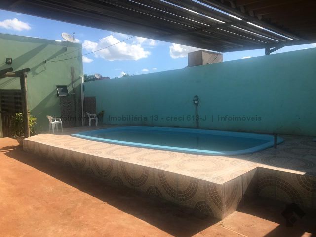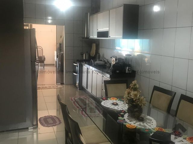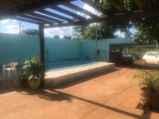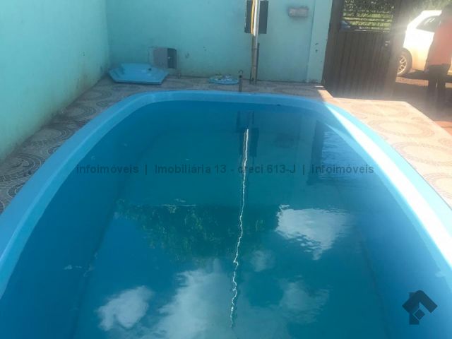A garagem mede 6x9m, ao lado um banheiro 3x1m e uma sala de 5x3m. Cozinha planejada de 3x7m, no fundo área de serviço. Entrando na casa outra sala de 5x3, banheiro e dois a quartos. Tem uma suíte de 4x4m aos lado closet . Na frente uma piscina. Terreno 12x30m.