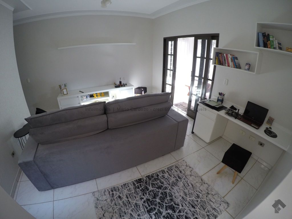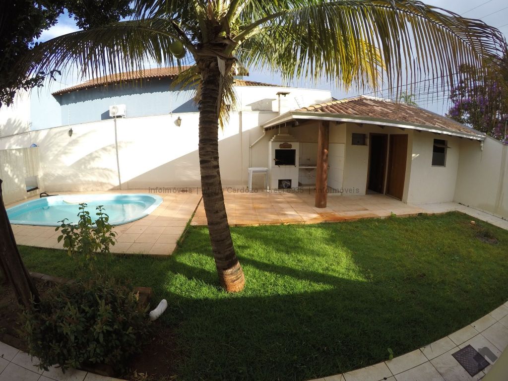 Casa térrea sendo 3 quartos internos, e um escritório também na área externa. Possui edícula com churrasqueira, banheiro e um quarto. Ampla área de serviço coberta. Área externa com amplo espaço e piscina.