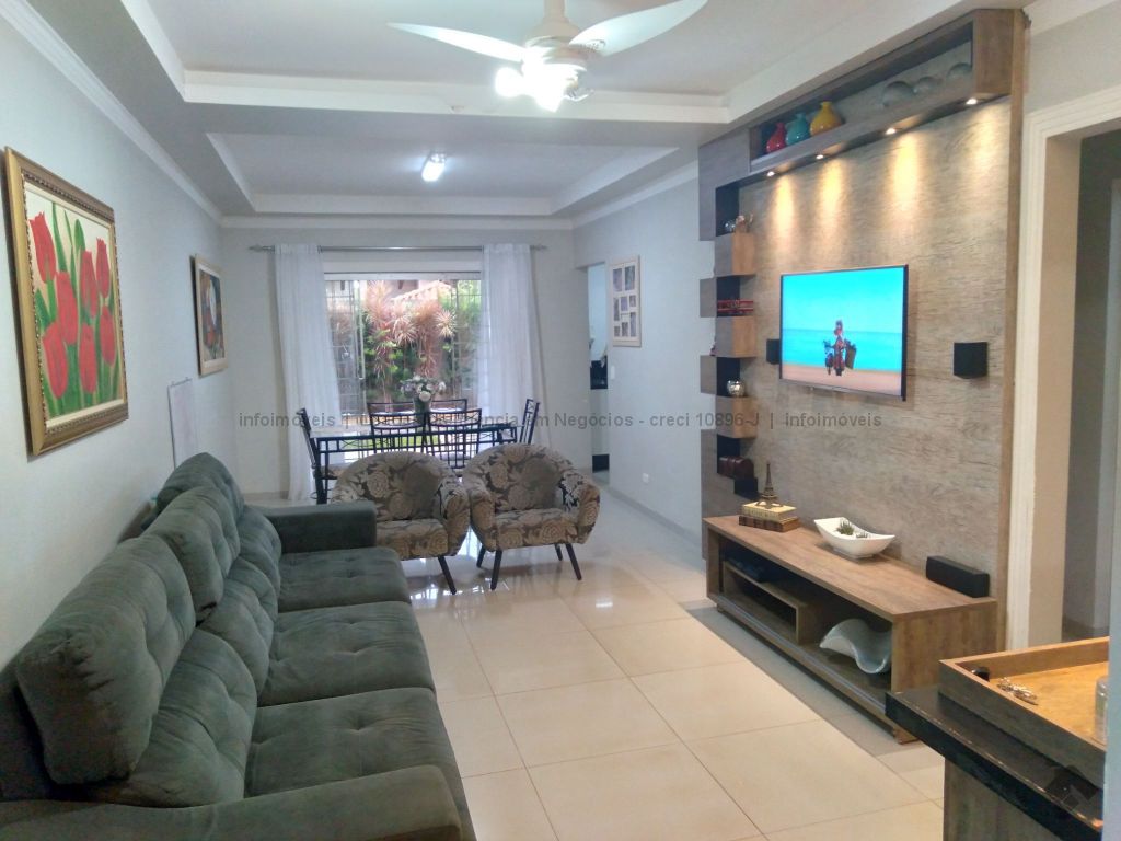 Imóvel contendo ampla sala para dois ambientes e com planejado, três quartos, sendo um simples, um com planejado e uma suíte com planejado e jardim de inverno, banheiro social, cozinha planejada, área de serviço coberta, varanda com churrasqueira e garagem para dois veículos.