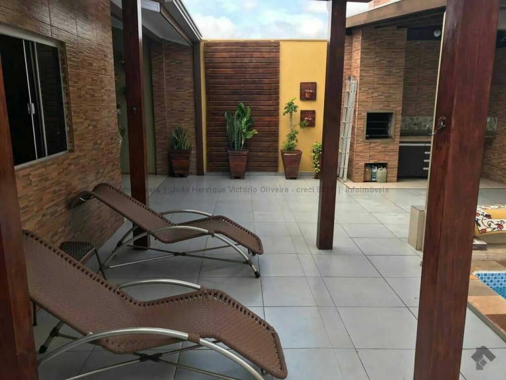 Casa com 03 quartos, 01 suíte, 01 sala de estar, 01 sala de jantar, 02 wc social, 01 cozinha, área de serviço coberta, quintal, piscina, área gourmet com churrasqueira, 03 vagas de garagem.