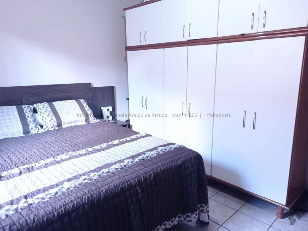 Casa térrea com sala de TV, sala de jantar, cozinha, três quartos com a/e, wc social, lavanderia e uma kit-net, espaço amplo no quintal para colocar piscina. Casa em perfeito estado de estrutura e cinco vagas de garagem.