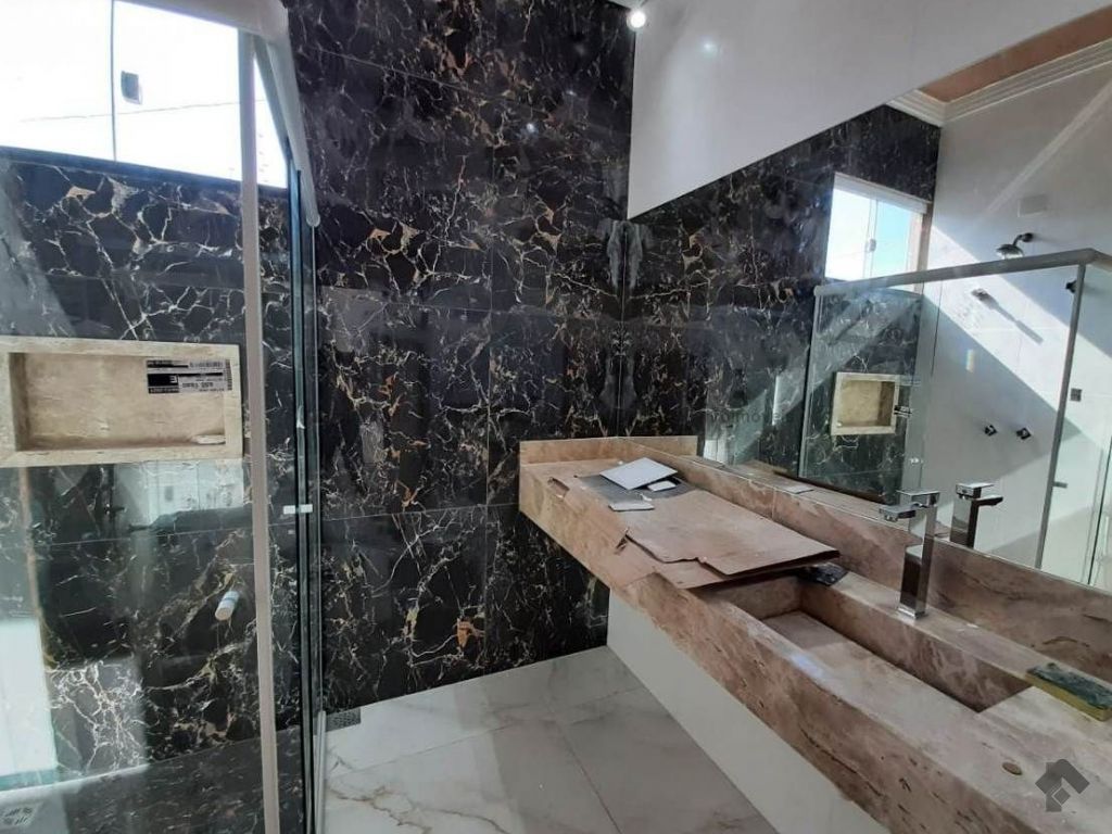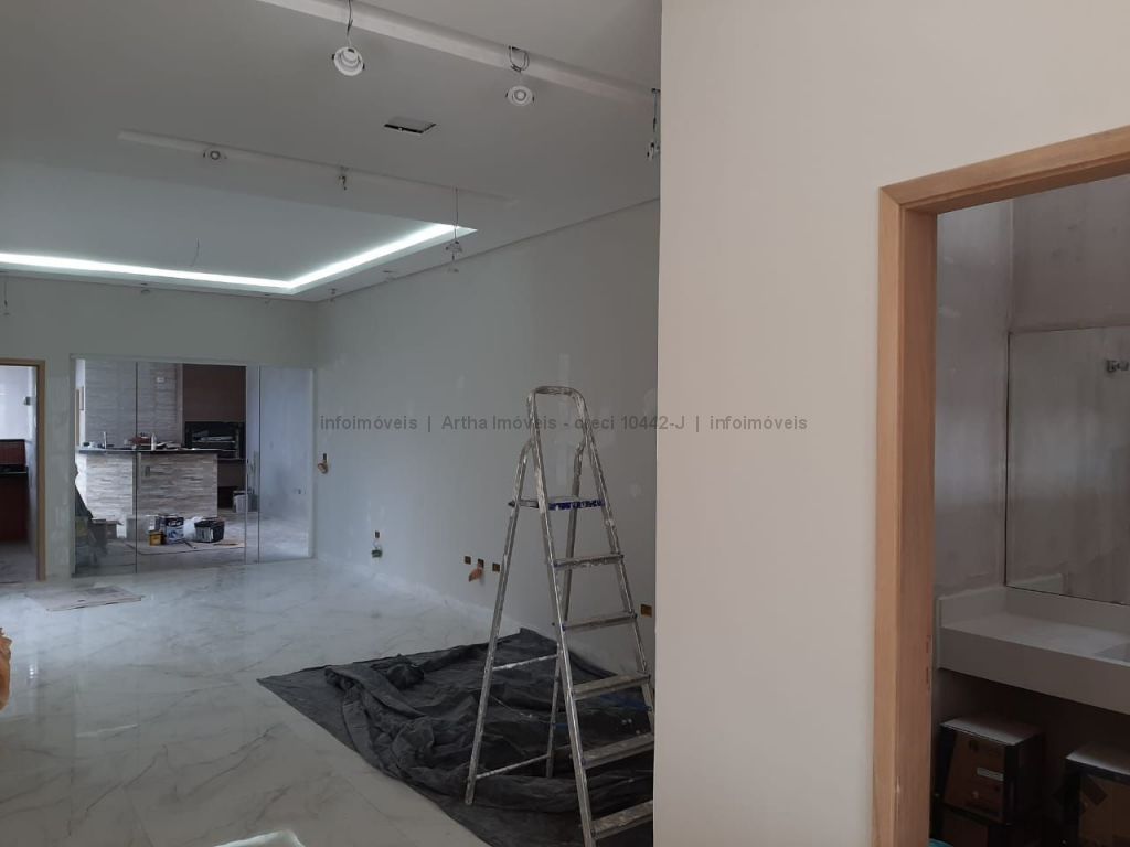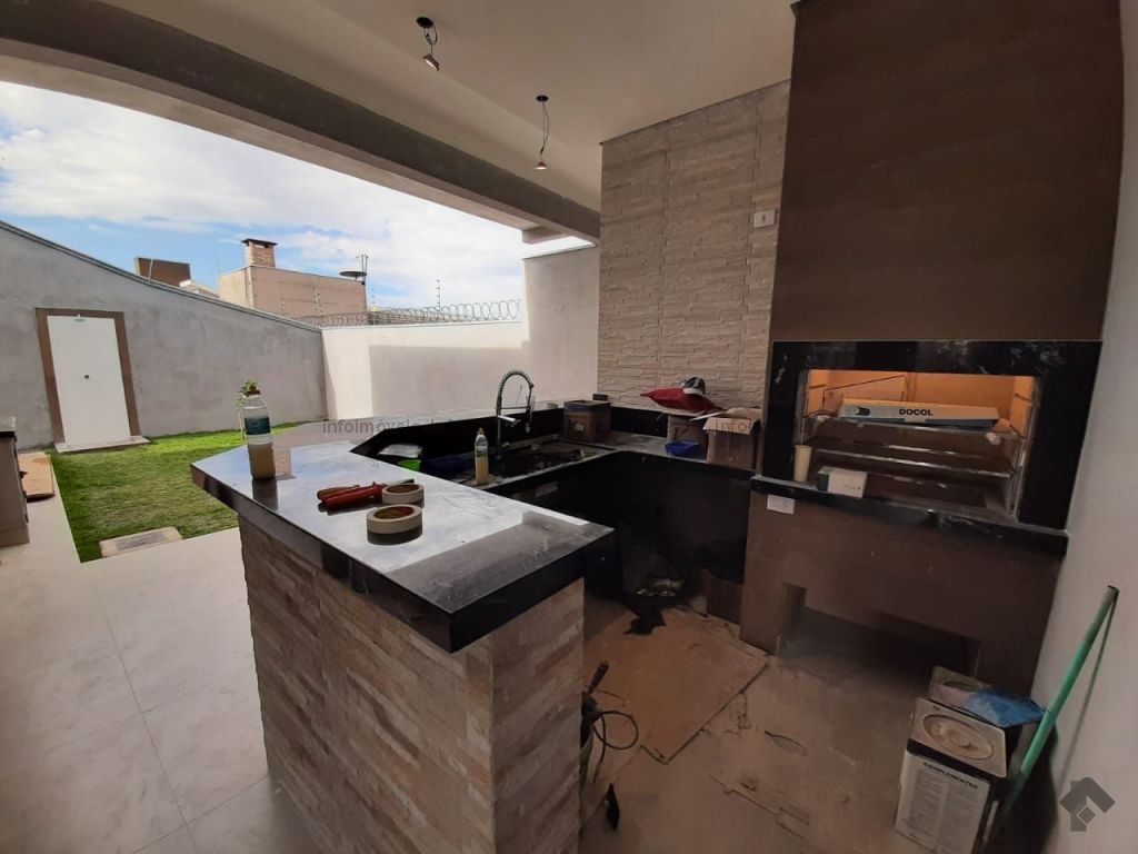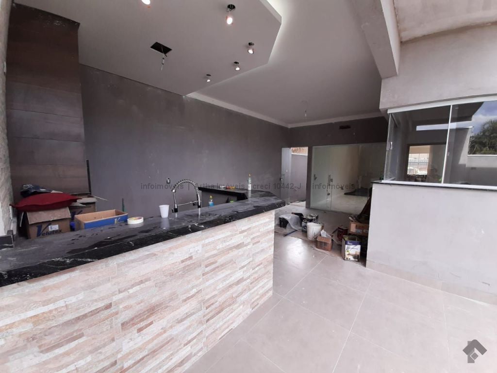Casa térrea com acabamento de alto padrão, contendo: living, sala jantar, sala tv, lavabo, 3 suítes, closet, jardim inverno, wc social, cozinha ampla, despensa, área de serviço, 3 garagem carros coberto, 2 garagem carros descoberto, chuveiro externo, área gourmet completa, quintal nos fundos, preparação piscina futura, aquecimento solar, acabamento alto padrão, cerca, alarme, trava elétrica, concertina, motor, interfone, porteiro eletrônico.