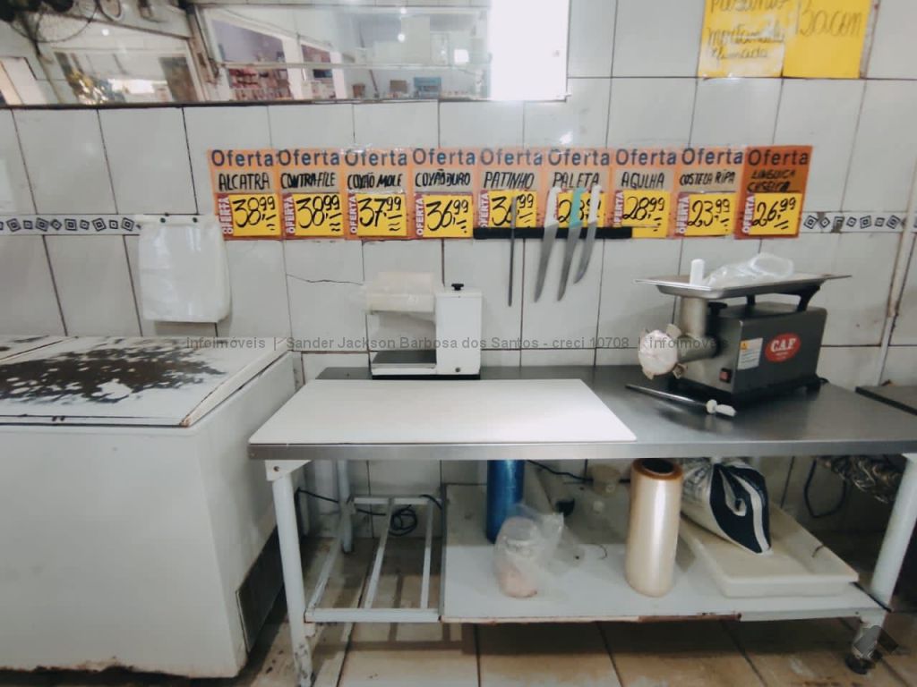 Ponto Comercial com todo estoque das prateleiras, câmaras frias, ar condicionado, climatizador, balcões refrigerados de carne, expositores refrigerados, computadores, balança de carne, maquina de assar frango, forno para pães, fatiador de frios, moedor de carne. A relação completa será apresentada aos interessados.